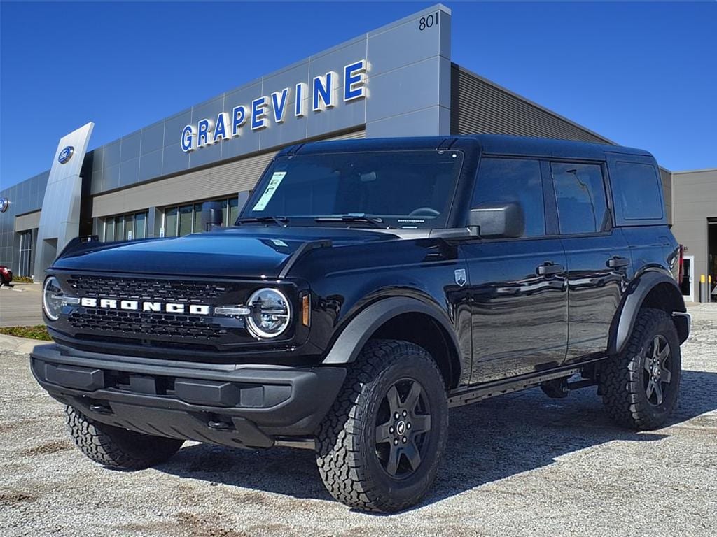 2025 Ford Bronco Big Bend Shadow Black 4WD 2-Door Intelligent Access w/Lock/Unlock, 4-Wheel Disc Brakes, 7 Speakers, ABS brakes, Air Conditioning, AM/FM Stereo, Ambient Footwell Lighting, Black Appearance Package, Black Molded-In-Color Door Handles, Black Molded-In-Color Fender Flares, Black Molded-In-Color Sideview Mirror Caps, Black-Painted Molded-In-Color Grille, BLIS Blind Spot Information System, Brake assist, Connected Navigation, Dr & Pass Illuminated Sliding Visor Vanity Mirrors, Dual front impact airbags, Dual front side impact airbags, Dual Smart Charging USB Ports, Dual-Zone Electronic Automatic Temperature Control, Electronic Stability Control, Emergency communication system: 911 Assist, Equipment Group 222A Mid Package, Exterior Parking Camera Rear, Front anti-roll bar, Front Row Heated Seats, Front wheel independent suspension, Integrated roll-over protection, Low tire pressure warning, Occupant sensing airbag, Overhead airbag, Power Outlet - Back Side of Center Floor Console, Power steering, Power windows, Radio data system, Rear Parking Sensors, Rear-View Camera, Remote keyless entry, Steering wheel mounted audio controls, SYNC 4, Traction control. 2.3L EcoBoost I-4 10-Speed Automatic Grapevine Ford Lincoln proudly serving the following communities. Grapevine, Southlake, Flower Mound, Coppell, Colleyville, Dallas, Ft Worth, Lewisville, Keller, Carrollton, The Colony, Frisco, Plano, Euless. We also serve customers in Argyle, Denton, Trophy Club, Northlake, Little Elm, Sanger, Murphy, Mesquite, DeSoto, Addison, Farmers Branch, University Park, Highland Park, Duncanville, Princeton, Prosper, Allen, Celina, and Farmersville. Some other cities include Fairview, Garland, Lucas, Irving, and Keller. We're right by DFW AIRPORT! Price includes: $2000 - Retail Bonus Cash $500 - Retail Bonus Cash