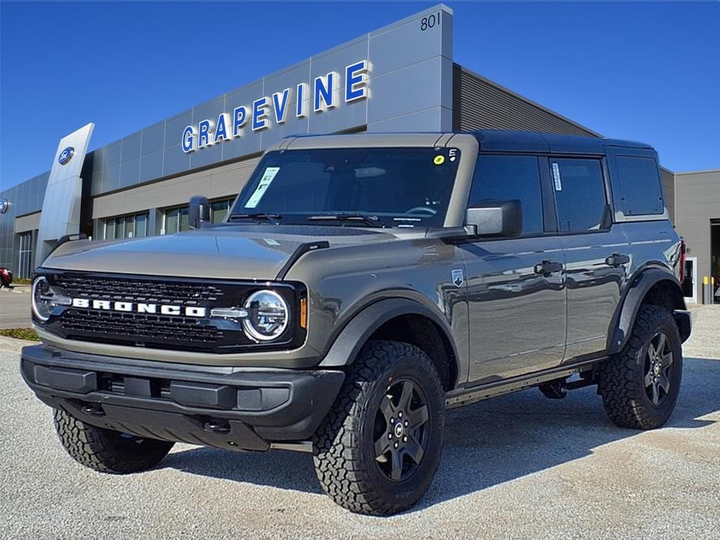 2025 Ford Bronco Big Bend Gray 4WD 2-Door Intelligent Access w/Lock/Unlock, 4-Wheel Disc Brakes, 7 Speakers, ABS brakes, Air Conditioning, AM/FM Stereo, Ambient Footwell Lighting, Black Appearance Package, Black Molded-In-Color Door Handles, Black Molded-In-Color Fender Flares, Black Molded-In-Color Sideview Mirror Caps, Black-Painted Molded-In-Color Grille, BLIS Blind Spot Information System, Brake assist, Connected Navigation, Dr & Pass Illuminated Sliding Visor Vanity Mirrors, Dual front impact airbags, Dual front side impact airbags, Dual Smart Charging USB Ports, Dual-Zone Electronic Automatic Temperature Control, Electronic Stability Control, Emergency communication system: 911 Assist, Equipment Group 222A Mid Package, Front anti-roll bar, Front Row Heated Seats, Front wheel independent suspension, Integrated roll-over protection, Low tire pressure warning, Occupant sensing airbag, Overhead airbag, Power Outlet - Back Side of Center Floor Console, Power steering, Power windows, Radio data system, Rear Parking Sensors, Remote keyless entry, Steering wheel mounted audio controls, SYNC 4, Traction control. 2.3L EcoBoost I-4 10-Speed Automatic Grapevine Ford Lincoln proudly serving the following communities. Grapevine, Southlake, Flower Mound, Coppell, Colleyville, Dallas, Ft Worth, Lewisville, Keller, Carrollton, The Colony, Frisco, Plano, Euless. We also serve customers in Argyle, Denton, Trophy Club, Northlake, Little Elm, Sanger, Murphy, Mesquite, DeSoto, Addison, Farmers Branch, University Park, Highland Park, Duncanville, Princeton, Prosper, Allen, Celina, and Farmersville. Some other cities include Fairview, Garland, Lucas, Irving, and Keller. We're right by DFW AIRPORT! Price includes: $2000 - Retail Bonus Cash