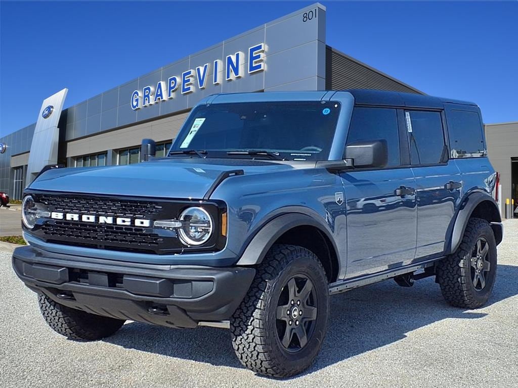 2025 Ford Bronco Big Bend Azure / Gray 4WD 2-Door Intelligent Access w/Lock/Unlock, 4-Wheel Disc Brakes, 7 Speakers, ABS brakes, Air Conditioning, AM/FM Stereo, Ambient Footwell Lighting, Auto High-beam Headlights, Black Appearance Package, Black Molded-In-Color Door Handles, Black Molded-In-Color Fender Flares, Black Molded-In-Color Sideview Mirror Caps, Black-Painted Molded-In-Color Grille, BLIS Blind Spot Information System, Brake assist, Connected Navigation, Delay-off headlights, Dr & Pass Illuminated Sliding Visor Vanity Mirrors, Dual front impact airbags, Dual front side impact airbags, Dual Smart Charging USB Ports, Dual-Zone Electronic Automatic Temperature Control, Electronic Stability Control, Emergency communication system: 911 Assist, Equipment Group 222A Mid Package, Exterior Parking Camera Rear, Front anti-roll bar, Front Row Heated Seats, Front wheel independent suspension, Fully automatic headlights, Integrated roll-over protection, Low tire pressure warning, Occupant sensing airbag, Overhead airbag, Power Outlet - Back Side of Center Floor Console, Power steering, Power windows, Radio data system, Rear Parking Sensors, Rear-View Camera, Remote keyless entry, Steering wheel mounted audio controls, SYNC 4, Traction control. 2.3L EcoBoost I-4 10-Speed Automatic Grapevine Ford Lincoln proudly serving the following communities. Grapevine, Southlake, Flower Mound, Coppell, Colleyville, Dallas, Ft Worth, Lewisville, Keller, Carrollton, The Colony, Frisco, Plano, Euless. We also serve customers in Argyle, Denton, Trophy Club, Northlake, Little Elm, Sanger, Murphy, Mesquite, DeSoto, Addison, Farmers Branch, University Park, Highland Park, Duncanville, Princeton, Prosper, Allen, Celina, and Farmersville. Some other cities include Fairview, Garland, Lucas, Irving, and Keller. We're right by DFW AIRPORT! Price includes: $2000 - Retail Bonus Cash