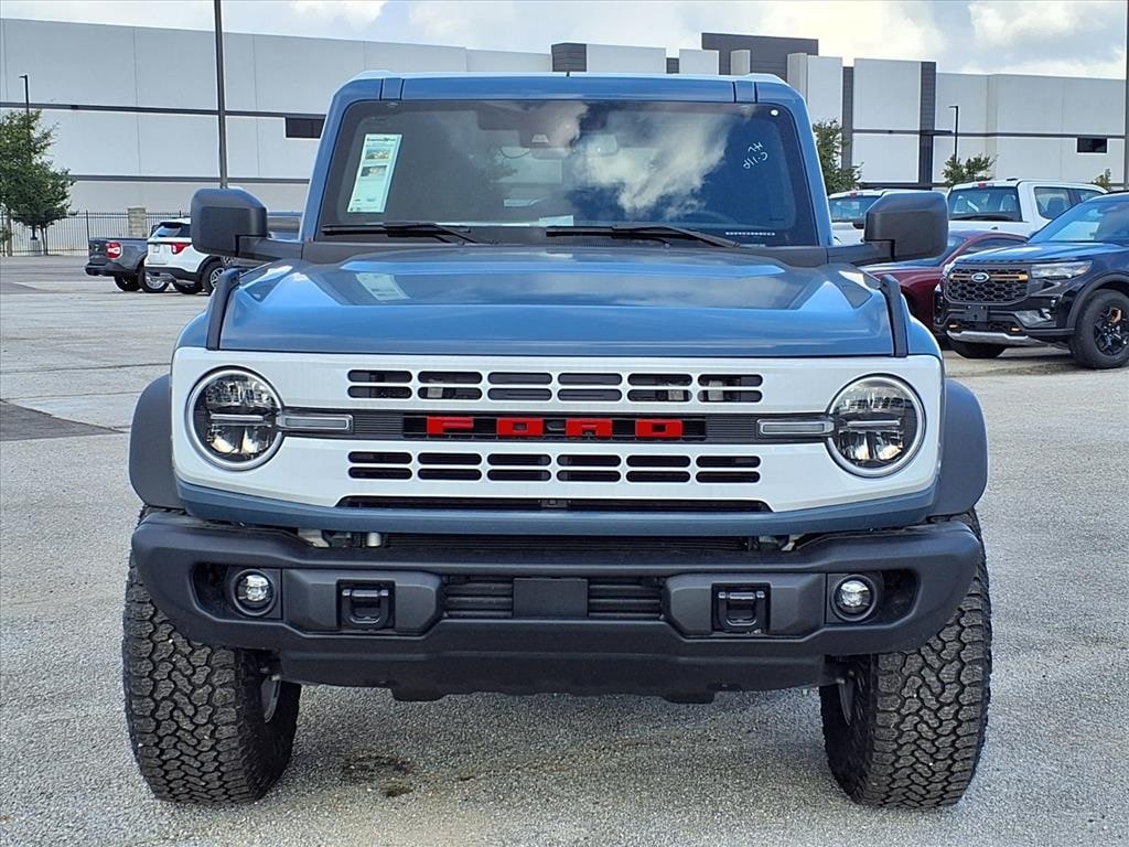 2025 Ford Bronco Heritage Edition Azure Gray Metallic 4WD 4-Wheel Disc Brakes, 7 Speakers, ABS brakes, Air Conditioning, AM/FM Stereo, Auto High-beam Headlights, Automatic temperature control, Brake assist, Connected Navigation, Convertible HardTop, Delay-off headlights, Dual front impact airbags, Dual front side impact airbags, Electronic Stability Control, Emergency communication system: 911 Assist, Equipment Group 662A Mid Package, Exterior Parking Camera Rear, Front anti-roll bar, Front dual zone A/C, Front fog lights, Front wheel independent suspension, Fully automatic headlights, Integrated roll-over protection, Low tire pressure warning, Navigation system: Connected Navigation, Occupant sensing airbag, Overhead airbag, Power steering, Power windows, Radio data system, Remote keyless entry, Steering wheel mounted audio controls, SYNC 4, Traction control. 2.7L EcoBoost V6 10-Speed Automatic Grapevine Ford Lincoln proudly serving the following communities. Grapevine, Southlake, Flower Mound, Coppell, Colleyville, Dallas, Ft Worth, Lewisville, Keller, Carrollton, The Colony, Frisco, Plano, Euless. We also serve customers in Argyle, Denton, Trophy Club, Northlake, Little Elm, Sanger, Murphy, Mesquite, DeSoto, Addison, Farmers Branch, University Park, Highland Park, Duncanville, Princeton, Prosper, Allen, Celina, and Farmersville. Some other cities include Fairview, Garland, Lucas, Irving, and Keller. We're right by DFW AIRPORT!