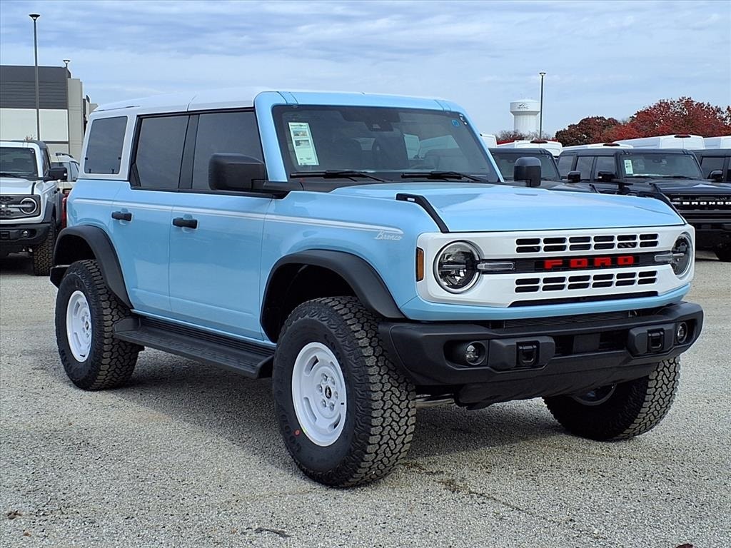 2025 Ford Bronco Heritage Edition Blue 4WD 4-Wheel Disc Brakes, 7 Speakers, ABS brakes, Air Conditioning, AM/FM Stereo, Auto High-beam Headlights, Automatic temperature control, Brake assist, Connected Navigation, Convertible HardTop, Delay-off headlights, Dual front impact airbags, Dual front side impact airbags, Electronic Stability Control, Emergency communication system: 911 Assist, Equipment Group 662A Mid Package, Exterior Parking Camera Rear, Front anti-roll bar, Front dual zone A/C, Front fog lights, Front wheel independent suspension, Fully automatic headlights, Integrated roll-over protection, Internet access capable: FordPass Connect, Low tire pressure warning, Navigation system: Connected Navigation, Occupant sensing airbag, Overhead airbag, Power steering, Power windows, Radio data system, Rear window defroster, Remote keyless entry, Steering wheel mounted audio controls, SYNC 4, Traction control. 2.7L EcoBoost V6 10-Speed Automatic Grapevine Ford Lincoln proudly serving the following communities. Grapevine, Southlake, Flower Mound, Coppell, Colleyville, Dallas, Ft Worth, Lewisville, Keller, Carrollton, The Colony, Frisco, Plano, Euless. We also serve customers in Argyle, Denton, Trophy Club, Northlake, Little Elm, Sanger, Murphy, Mesquite, DeSoto, Addison, Farmers Branch, University Park, Highland Park, Duncanville, Princeton, Prosper, Allen, Celina, and Farmersville. Some other cities include Fairview, Garland, Lucas, Irving, and Keller. We're right by DFW AIRPORT! Price includes: $1000 - Final Days Mega Bonus Cash $2000 - Retail Bonus Cash