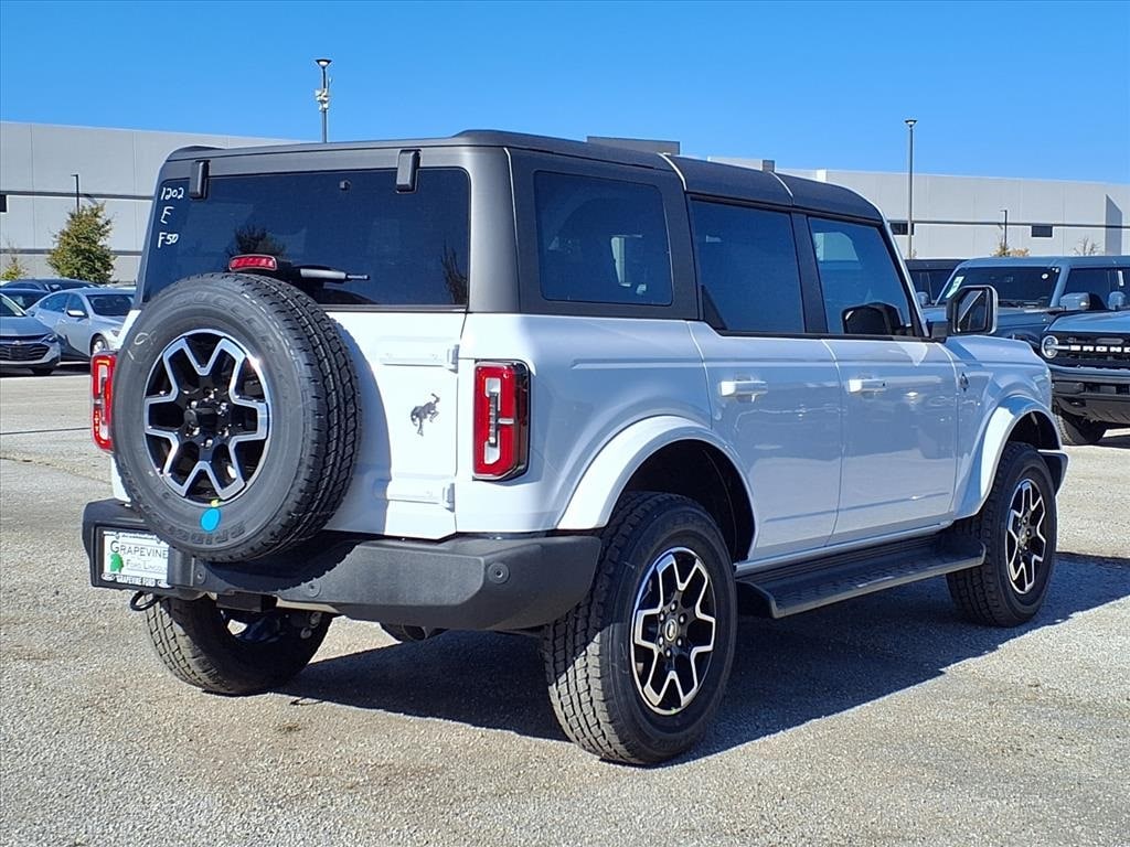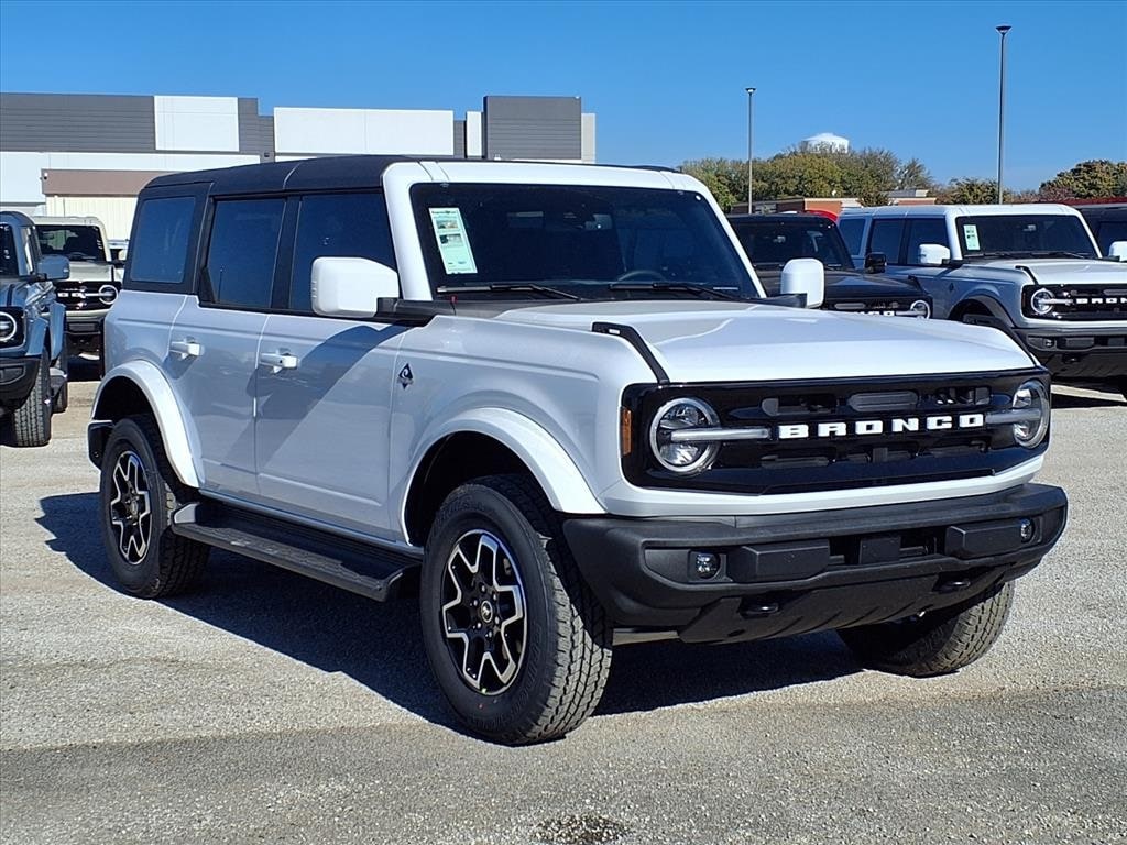 2025 Ford Bronco Outer Banks Oxford White 4WD 4-Wheel Disc Brakes, 7 Speakers, ABS brakes, Air Conditioning, AM/FM Stereo, Automatic temperature control, Brake assist, Connected Navigation, Dual front impact airbags, Dual front side impact airbags, Electronic Stability Control, Emergency communication system: 911 Assist, Equipment Group 312A Mid Package, Front anti-roll bar, Front dual zone A/C, Front wheel independent suspension, Integrated roll-over protection, Internet access capable: FordPass Connect, Low tire pressure warning, Navigation system: Connected Navigation, Occupant sensing airbag, Overhead airbag, Power driver seat, Power steering, Power windows, Radio data system, Remote keyless entry, Steering wheel mounted audio controls, SYNC 4, Traction control. 2.7L EcoBoost V6 10-Speed Automatic Grapevine Ford Lincoln proudly serving the following communities. Grapevine, Southlake, Flower Mound, Coppell, Colleyville, Dallas, Ft Worth, Lewisville, Keller, Carrollton, The Colony, Frisco, Plano, Euless. We also serve customers in Argyle, Denton, Trophy Club, Northlake, Little Elm, Sanger, Murphy, Mesquite, DeSoto, Addison, Farmers Branch, University Park, Highland Park, Duncanville, Princeton, Prosper, Allen, Celina, and Farmersville. Some other cities include Fairview, Garland, Lucas, Irving, and Keller. We're right by DFW AIRPORT! Price includes: $1000 - Final Days Mega Bonus Cash $2000 - Retail Bonus Cash