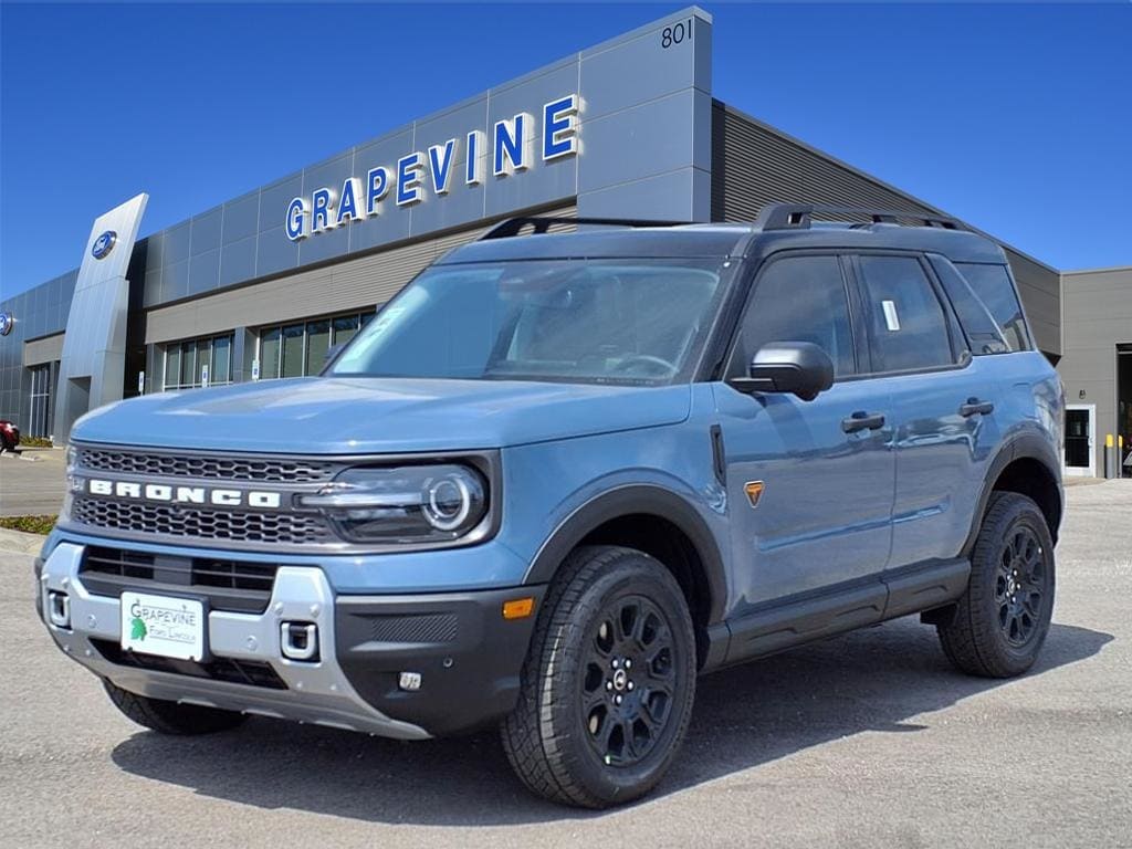 2025 Ford Bronco Sport Badlands Azure Gray Metallic 4WD 4-Wheel Disc Brakes, 6 Speakers, ABS brakes, Air Conditioning, AM/FM Stereo, Auto High-beam Headlights, Automatic temperature control, B&O Sound System by Bang & Olufsen, Badlands Tech Package, Brake assist, Connected Navigation, Delay-off headlights, Dual front impact airbags, Dual front side impact airbags, Electronic Stability Control, Emergency communication system: SYNC 4 911 Assist, Equipment Group 400A, Four wheel independent suspension, Front anti-roll bar, Front fog lights, Fully automatic headlights, HD Radio, Knee airbag, Low tire pressure warning, Memory seat, Occupant sensing airbag, Overhead airbag, Panic alarm, Power driver seat, Power Moonroof, Power steering, Power windows, Radio data system, Rear anti-roll bar, Rear window defroster, Remote keyless entry, Security system, Speed-sensing steering, Steering wheel mounted audio controls, SYNC 4 w/Enhanced Voice Recognition, Traction control. EcoBoost 2.0L I4 GTDi DOHC Turbocharged VCT 8-Speed Automatic Grapevine Ford Lincoln proudly serving the following communities. Grapevine, Southlake, Flower Mound, Coppell, Colleyville, Dallas, Ft Worth, Lewisville, Keller, Carrollton, The Colony, Frisco, Plano, Euless. We also serve customers in Argyle, Denton, Trophy Club, Northlake, Little Elm, Sanger, Murphy, Mesquite, DeSoto, Addison, Farmers Branch, University Park, Highland Park, Duncanville, Princeton, Prosper, Allen, Celina, and Farmersville. Some other cities include Fairview, Garland, Lucas, Irving, and Keller. We're right by DFW AIRPORT! Price includes: $1500 - Retail Bonus Cash