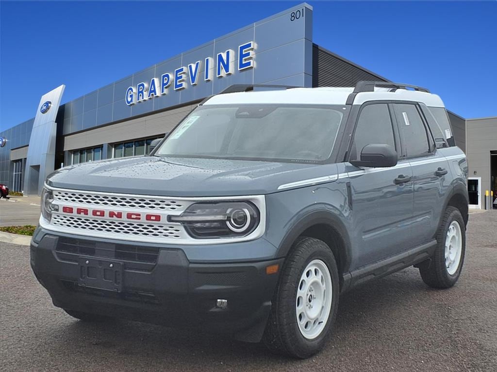2025 Ford Bronco Sport Heritage Azure Gray Metallic 4WD 4-Wheel Disc Brakes, 6 Speakers, ABS brakes, Air Conditioning, AM/FM Stereo, Auto High-beam Headlights, Automatic temperature control, Brake assist, Convenience Package, Delay-off headlights, Dual front impact airbags, Dual front side impact airbags, Electronic Stability Control, Emergency communication system: SYNC 4 911 Assist, Equipment Group 250A, Four wheel independent suspension, Front anti-roll bar, Front Driver/Passenger Seat Back Map Pockets, Fully automatic headlights, Heated 8-Way Power Driver's Seat, Knee airbag, LED Fog Lamps, Low tire pressure warning, Occupant sensing airbag, Overhead airbag, Panic alarm, Power steering, Power windows, Premium Wrapped Steering Wheel, Radio data system, Rear anti-roll bar, Rear Parking Sensors, Rear window defroster, Remote keyless entry, Security system, Speed-sensing steering, Steering wheel mounted audio controls, SYNC 4 w/Enhanced Voice Recognition, Traction control, Universal Garage Door Opener (UGDO). 1.5L EcoBoost 8-Speed Automatic Grapevine Ford Lincoln proudly serving the following communities. Grapevine, Southlake, Flower Mound, Coppell, Colleyville, Dallas, Ft Worth, Lewisville, Keller, Carrollton, The Colony, Frisco, Plano, Euless. We also serve customers in Argyle, Denton, Trophy Club, Northlake, Little Elm, Sanger, Murphy, Mesquite, DeSoto, Addison, Farmers Branch, University Park, Highland Park, Duncanville, Princeton, Prosper, Allen, Celina, and Farmersville. Some other cities include Fairview, Garland, Lucas, Irving, and Keller. We're right by DFW AIRPORT! Price includes: $1500 - Retail Bonus Cash $500 - Retail Bonus Cash