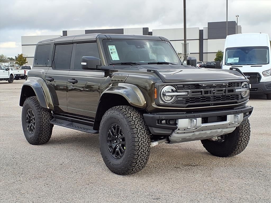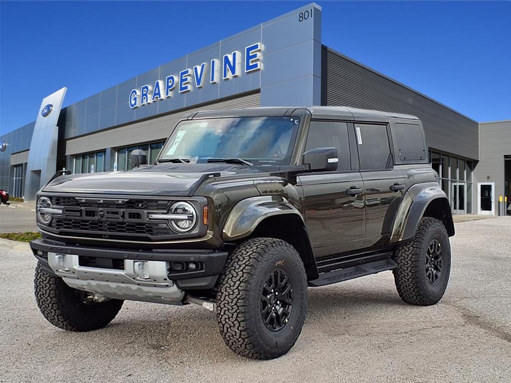 2025 Ford Bronco Raptor Green 4WD 12 Speakers, 4-Wheel Disc Brakes, ABS brakes, Air Conditioning, Auto High-beam Headlights, Automatic temperature control, Brake assist, Connected Navigation, Convertible HardTop, Delay-off headlights, Dual front impact airbags, Dual front side impact airbags, Electronic Stability Control, Emergency communication system: 911 Assist, Equipment Group 374A Lux Package, Exterior Parking Camera Rear, Front anti-roll bar, Front dual zone A/C, Front fog lights, Front wheel independent suspension, Fully automatic headlights, Integrated roll-over protection, Low tire pressure warning, Navigation system: Connected Navigation, Occupant sensing airbag, Overhead airbag, Panic alarm, Power steering, Power windows, Radio data system, Radio: B&O Sound System by Bang & Olufsen, Rear anti-roll bar, Rear window defroster, Remote keyless entry, Security system, Steering wheel mounted audio controls, SYNC 4, Traction control. 3.0L EcoBoost V6 10-Speed Automatic Grapevine Ford Lincoln proudly serving the following communities. Grapevine, Southlake, Flower Mound, Coppell, Colleyville, Dallas, Ft Worth, Lewisville, Keller, Carrollton, The Colony, Frisco, Plano, Euless. We also serve customers in Argyle, Denton, Trophy Club, Northlake, Little Elm, Sanger, Murphy, Mesquite, DeSoto, Addison, Farmers Branch, University Park, Highland Park, Duncanville, Princeton, Prosper, Allen, Celina, and Farmersville. Some other cities include Fairview, Garland, Lucas, Irving, and Keller. We're right by DFW AIRPORT!