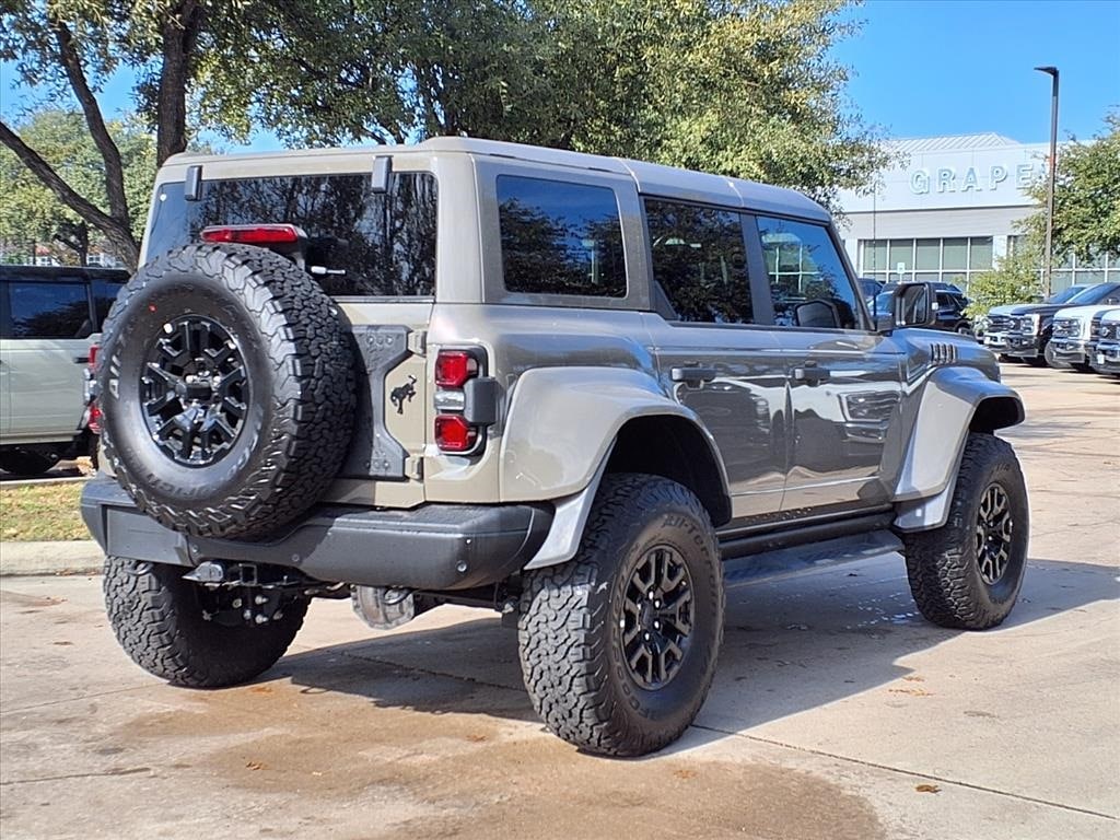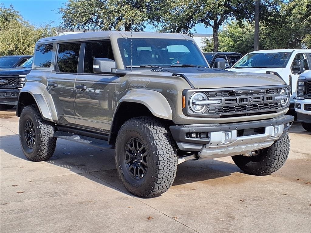 2025 Ford Bronco Raptor Gray 4WD 12 Speakers, 4-Wheel Disc Brakes, ABS brakes, Air Conditioning, Automatic temperature control, Brake assist, Connected Navigation, Convertible HardTop, Dual front impact airbags, Dual front side impact airbags, Electronic Stability Control, Emergency communication system: 911 Assist, Equipment Group 374A Lux Package, Front anti-roll bar, Front dual zone A/C, Front wheel independent suspension, Integrated roll-over protection, Internet access capable: FordPass Connect, Low tire pressure warning, Navigation system: Connected Navigation, Occupant sensing airbag, Overhead airbag, Power steering, Power windows, Radio data system, Radio: B&O Sound System by Bang & Olufsen, Rear anti-roll bar, Rear window defroster, Remote keyless entry, SiriusXM w/360L, Steering wheel mounted audio controls, SYNC 4, Traction control. 3.0L EcoBoost V6 10-Speed Automatic Grapevine Ford Lincoln proudly serving the following communities. Grapevine, Southlake, Flower Mound, Coppell, Colleyville, Dallas, Ft Worth, Lewisville, Keller, Carrollton, The Colony, Frisco, Plano, Euless. We also serve customers in Argyle, Denton, Trophy Club, Northlake, Little Elm, Sanger, Murphy, Mesquite, DeSoto, Addison, Farmers Branch, University Park, Highland Park, Duncanville, Princeton, Prosper, Allen, Celina, and Farmersville. Some other cities include Fairview, Garland, Lucas, Irving, and Keller. We're right by DFW AIRPORT!