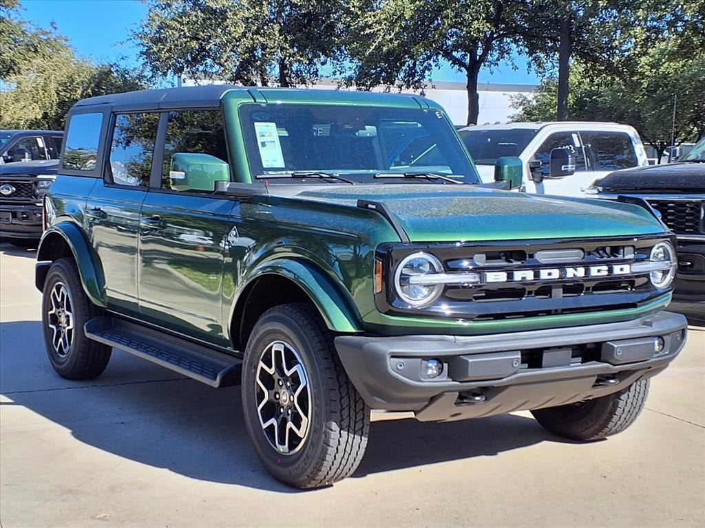 2025 Ford Bronco Outer Banks Green Metallic 4WD 360-Degree Camera, 4-Wheel Disc Brakes, 7 Speakers, ABS brakes, Adaptive Cruise Control, Air Conditioning, AM/FM Stereo, Auto High-beam Headlights, Automatic temperature control, Brake assist, Connected Navigation, Delay-off headlights, Dual front impact airbags, Dual front side impact airbags, Electronic Stability Control, Emergency communication system: 911 Assist, Equipment Group 314A Lux Package, Evasive Steering Assist, Exterior Parking Camera Rear, Front anti-roll bar, Front dual zone A/C, Front fog lights, Front Parking Sensors, Front wheel independent suspension, Fully automatic headlights, Information on Demand Panel, Integrated roll-over protection, Low tire pressure warning, Navigation system: Connected Navigation, Occupant sensing airbag, Overhead airbag, Panic alarm, Power driver seat, Power steering, Power windows, Radio data system, Radio: B&O Sound System by Bang & Olufsen, Remote keyless entry, Security system, Sideview Mirrors, Steering wheel mounted audio controls, SYNC 4, Traction control, Universal Garage Door Opener. 2.7L EcoBoost V6 10-Speed Automatic Grapevine Ford Lincoln proudly serving the following communities. Grapevine, Southlake, Flower Mound, Coppell, Colleyville, Dallas, Ft Worth, Lewisville, Keller, Carrollton, The Colony, Frisco, Plano, Euless. We also serve customers in Argyle, Denton, Trophy Club, Northlake, Little Elm, Sanger, Murphy, Mesquite, DeSoto, Addison, Farmers Branch, University Park, Highland Park, Duncanville, Princeton, Prosper, Allen, Celina, and Farmersville. Some other cities include Fairview, Garland, Lucas, Irving, and Keller. We're right by DFW AIRPORT! Price includes: $2000 - Retail Bonus Cash $500 - Retail Bonus Cash