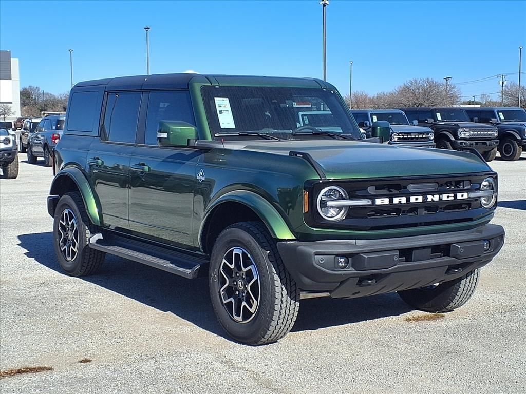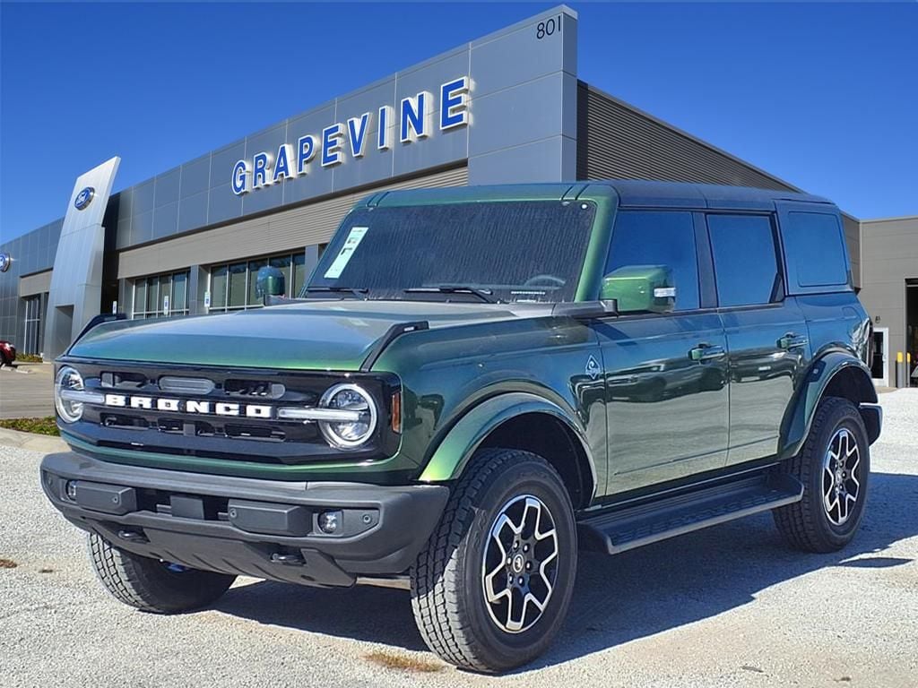 2025 Ford Bronco Outer Banks Green Metallic 4WD 360-Degree Camera, 4-Wheel Disc Brakes, 7 Speakers, ABS brakes, Adaptive Cruise Control, Air Conditioning, AM/FM Stereo, Automatic temperature control, Connected Navigation, Dual front impact airbags, Dual front side impact airbags, Emergency communication system: 911 Assist, Equipment Group 314A Lux Package, Evasive Steering Assist, Front anti-roll bar, Front dual zone A/C, Front Parking Sensors, Front wheel independent suspension, Information on Demand Panel, Integrated roll-over protection, Low tire pressure warning, Navigation system: Connected Navigation, Occupant sensing airbag, Overhead airbag, Power driver seat, Power steering, Power windows, Radio data system, Radio: B&O Sound System by Bang & Olufsen, Remote keyless entry, Sideview Mirrors, SiriusXM w/360L, Steering wheel mounted audio controls, SYNC 4, Traction control, Universal Garage Door Opener. 2.3L EcoBoost I-4 10-Speed Automatic Grapevine Ford Lincoln proudly serving the following communities. Grapevine, Southlake, Flower Mound, Coppell, Colleyville, Dallas, Ft Worth, Lewisville, Keller, Carrollton, The Colony, Frisco, Plano, Euless. We also serve customers in Argyle, Denton, Trophy Club, Northlake, Little Elm, Sanger, Murphy, Mesquite, DeSoto, Addison, Farmers Branch, University Park, Highland Park, Duncanville, Princeton, Prosper, Allen, Celina, and Farmersville. Some other cities include Fairview, Garland, Lucas, Irving, and Keller. We're right by DFW AIRPORT! Price includes: $2750 - Retail Customer Cash