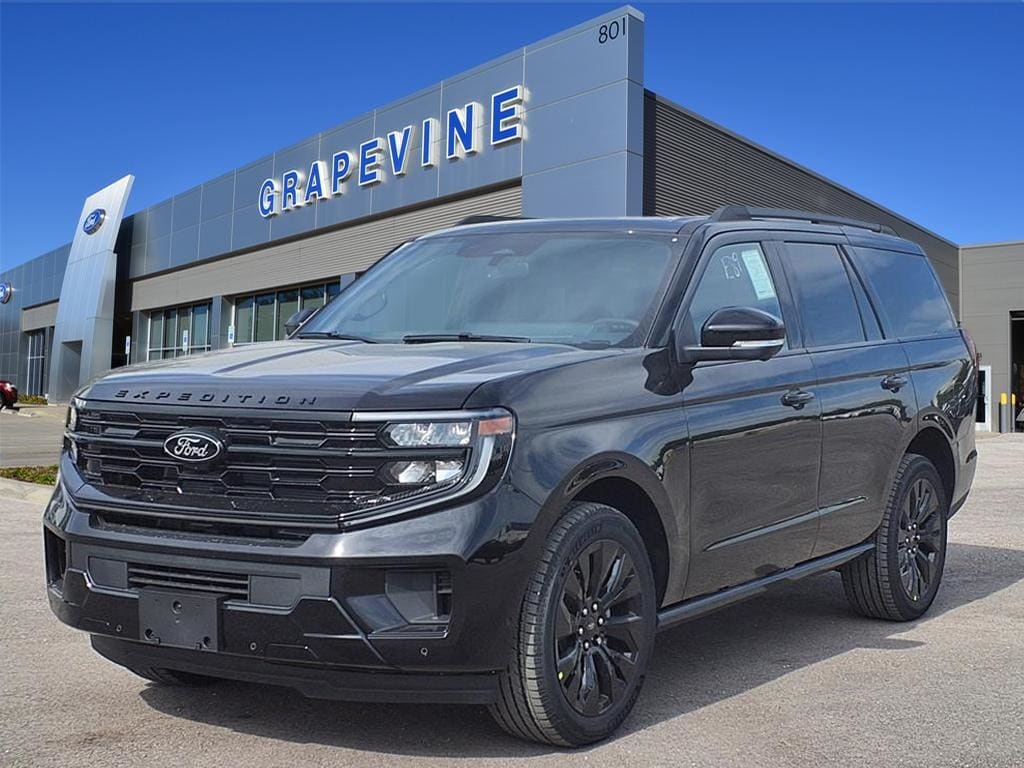2025 Ford Expedition Platinum Black Metallic 4WD 10 Speakers, 2nd Row Power-Folding Captain's Chairs, 4-Wheel Disc Brakes, ABS brakes, Air Conditioning, Automatic temperature control, Black Belt Molding, Black Expedition Lettering On Hood, Black Headlamp Bezel w/Ebony Trim Applique, Black Platinum Badge On Tailgate, Black Roof Rails, Brake assist, Carbon Black Front Bumper/Fascia, Connectivity Package (One-Time Purchase), Dual front impact airbags, Dual front side impact airbags, Electronic Stability Control, Emergency communication system: 911 Assist, Engine Sound Enhancer, Equipment Group 600A Standard Package, Four wheel independent suspension, Front anti-roll bar, Front dual zone A/C, Low tire pressure warning, Memory seat, Navigation System, Occupant sensing airbag, Overhead airbag, Pedal memory, Power driver seat, Power moonroof: Vista Roof, Power steering, Power windows, Radio data system, Radio: B&O Sound System by Bang & Olufsen, Rear air conditioning, Rear anti-roll bar, Rear Side Windows Laminated Glass, Rear window defroster, Remote keyless entry, Signature Grille Lighting, SiriusXM w/360L, Speed-sensing steering, Stealth Appearance Package, Steering wheel memory, Steering wheel mounted audio controls, Traction control. EcoBoost 3.5L V6 GTDi DOHC 24V Twin Turbocharged 10-Speed Automatic Grapevine Ford Lincoln proudly serving the following communities. Grapevine, Southlake, Flower Mound, Coppell, Colleyville, Dallas, Ft Worth, Lewisville, Keller, Carrollton, The Colony, Frisco, Plano, Euless. We also serve customers in Argyle, Denton, Trophy Club, Northlake, Little Elm, Sanger, Murphy, Mesquite, DeSoto, Addison, Farmers Branch, University Park, Highland Park, Duncanville, Princeton, Prosper, Allen, Celina, and Farmersville. Some other cities include Fairview, Garland, Lucas, Irving, and Keller. We're right by DFW AIRPORT!