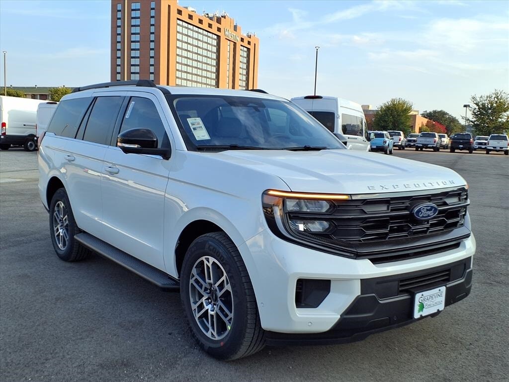 2025 Ford Expedition Active White RWD 110V/400W AC Power Outlet, 2nd Row Power-Folding Captain's Chairs, 360-Degree Zone Lighting, 3rd Row Flexible Seating, 3rd Row Vinyl Seats, 4-Door Intelligent Access (Lock/Unlock), 4-Wheel Disc Brakes, 6 Speakers, ABS brakes, ActiveX Front Heated Captain's Chairs, Air Conditioning, AM/FM radio: SiriusXM with 360L, Auto High-beam Headlights, Automatic temperature control, BlueCruise Equipped, Brake assist, Delay-off headlights, Dual front impact airbags, Dual front side impact airbags, Electronic Stability Control, Emergency communication system: 911 Assist, Equipment Group 202A High Package, Exterior Parking Camera Rear, Flex Powered Console, Ford Split Gate, Four wheel independent suspension, Front anti-roll bar, Front dual zone A/C, Front Side Laminated Glass, Fully automatic headlights, Heated Steering Wheel, Low tire pressure warning, Memory Driver Seat, Navigation System, Occupant sensing airbag, Overhead airbag, Panic alarm, Power driver seat, Power Panoramic Vista Roof w/Power Sunshade, Power steering, Power Tilt/Telescopic Steering Wheel w/Memory, Power windows, Power-Folding Sideview Mirrors w/Autofold, Radio data system, Radio: AM/FM Stereo w/MP3 Capable, Rain Sensing Wipers, Rear air conditioning, Rear anti-roll bar, Rear window defroster, Remote keyless entry, SecuriCode Keyless Entry Pad, Security system, Speed control, Speed-sensing steering, Steering wheel mounted audio controls, Traction control, Universal Garage Door Opener, USB Ports, Wheels: 20" Carbonized Gray Bright Machined Aluminum, Wireless Charging Pad. EcoBoost 3.5L V6 GTDi DOHC 24V Twin Turbocharged 10-Speed Automatic Grapevine Ford Lincoln proudly serving the following communities. Grapevine, Southlake, Flower Mound, Coppell, Colleyville, Dallas, Ft Worth, Lewisville, Keller, Carrollton, The Colony, Frisco, Plano, Euless. We also serve customers in Argyle, Denton, Trophy Club, Northlake, Little Elm, Sanger, Murphy, Mesquite, DeSoto, Addison, Farmers Branch, University Park, Highland Park, Duncanville, Princeton, Prosper, Allen, Celina, and Farmersville. Some other cities include Fairview, Garland, Lucas, Irving, and Keller. We're right by DFW AIRPORT!