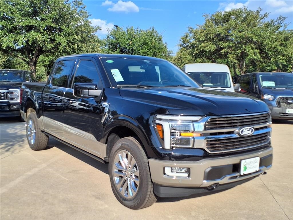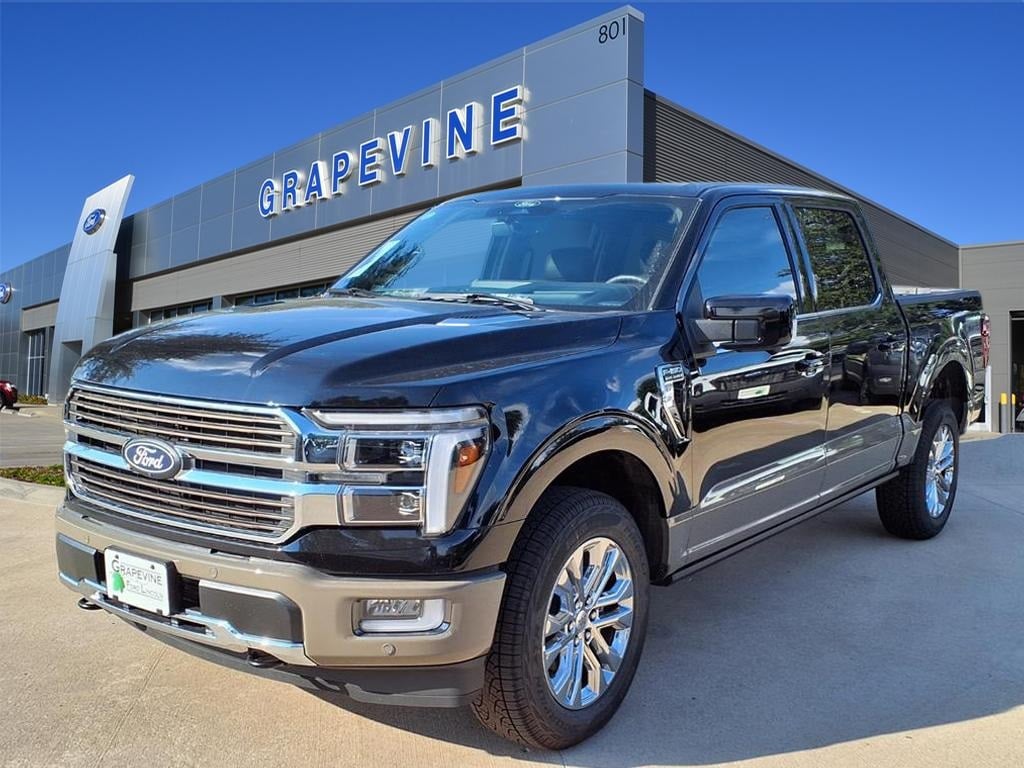2025 Ford F-150 King Ranch Black Metallic 4WD 14 Speakers, 4-Wheel Disc Brakes, 4x4 FX4 Off-Road Bodyside Decal, ABS brakes, Air Conditioning, Auto High-beam Headlights, Automatic temperature control, Brake assist, Delay-off headlights, Dual front impact airbags, Dual front side impact airbags, Electronic Locking w/3.55 Axle Ratio, Emergency communication system: SYNC 4 911 Assist, Equipment Group 601A High, Front anti-roll bar, Front dual zone A/C, Front fog lights, Front wheel independent suspension, Fully automatic headlights, FX4 Off-Road Package, Heads-Up Display, Hill Descent Control, Low tire pressure warning, Memory seat, Monotube Rear Shocks, Navigation system: Connected Navigation, Occupant sensing airbag, Off-Road Tuned Front Shock Absorbers, Overhead airbag, Panic alarm, Pedal memory, Power driver seat, Power moonroof, Power steering, Power windows, Radio data system, Radio: B&O Unleashed Sound System by Bang & Olufsen, Rear window defroster, Remote keyless entry, Rock Crawl Mode, Security system, Speed control, Steering wheel memory, Steering wheel mounted audio controls, SYNC 4 w/Enhanced Voice Recognition, Traction control. 3.5L V6 EcoBoost 10-Speed Automatic Grapevine Ford Lincoln proudly serving the following communities. Grapevine, Southlake, Flower Mound, Coppell, Colleyville, Dallas, Ft Worth, Lewisville, Keller, Carrollton, The Colony, Frisco, Plano, Euless. We also serve customers in Argyle, Denton, Trophy Club, Northlake, Little Elm, Sanger, Murphy, Mesquite, DeSoto, Addison, Farmers Branch, University Park, Highland Park, Duncanville, Princeton, Prosper, Allen, Celina, and Farmersville. Some other cities include Fairview, Garland, Lucas, Irving, and Keller. We're right by DFW AIRPORT!