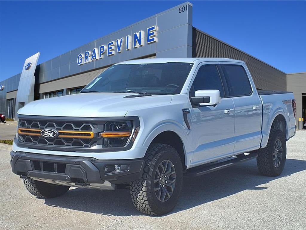 2025 Ford F-150 Tremor White Metallic 4WD 2nd Row Heated Seats, 4 Pickup Box Tie-Down Plates, 4-Wheel Disc Brakes, 8 Speakers, ABS brakes, Air Conditioning, Ambient Lighting, Auto-Dimming Rear-View Mirror, Automatic temperature control, Bed Utility Package, Console Worksurface, Dual front impact airbags, Dual front side impact airbags, Emergency communication system: SYNC 4 911 Assist, Equipment Group 402A High, Front anti-roll bar, Front Axle w/Torsen Differential, Front dual zone A/C, Front wheel independent suspension, GVWR: 7,100 lbs Payload Package, Heads-Up Display, Heated Steering Wheel, Integrated Trailer Brake Controller, LED Box Lighting, LED Taillamps, Low tire pressure warning, Media Bin Door, Mobile Office Package, Modular Front Bumper & Carbon Black Rear Bumper, Navigation system: Connected Navigation, Occupant sensing airbag, Overhead airbag, Partitioned Lockable Rear Storage, Power driver seat, Power Glass Heated Sideview Mirrors, Power steering, Power Tailgate, Power windows, Power-Adjustable Pedals w/Memory, Premium Wrapped Steering Wheel, Radio data system, Radio: B&O Sound System by Bang & Olufsen, Radio: B&O Unleashed Sound System by Bang & Olufsen, Rain-Sensing Wipers, Rear window defroster, Remote keyless entry, Steering wheel mounted audio controls, SYNC 4 w/Enhanced Voice Recognition, Tow/Haul Package, Two-Speed Automatic AWD w/Mechanical Locking 4WD, Unique Tremor Leather-Trimmed Bucket Seats, Universal Garage Door Opener, Wireless Charging. 5.0L V8 10-Speed Automatic Grapevine Ford Lincoln proudly serving the following communities. Grapevine, Southlake, Flower Mound, Coppell, Colleyville, Dallas, Ft Worth, Lewisville, Keller, Carrollton, The Colony, Frisco, Plano, Euless. We also serve customers in Argyle, Denton, Trophy Club, Northlake, Little Elm, Sanger, Murphy, Mesquite, DeSoto, Addison, Farmers Branch, University Park, Highland Park, Duncanville, Princeton, Prosper, Allen, Celina, and Farmersville. Some other cities include Fairview, Garland, Lucas, Irving, and Keller. We're right by DFW AIRPORT!
