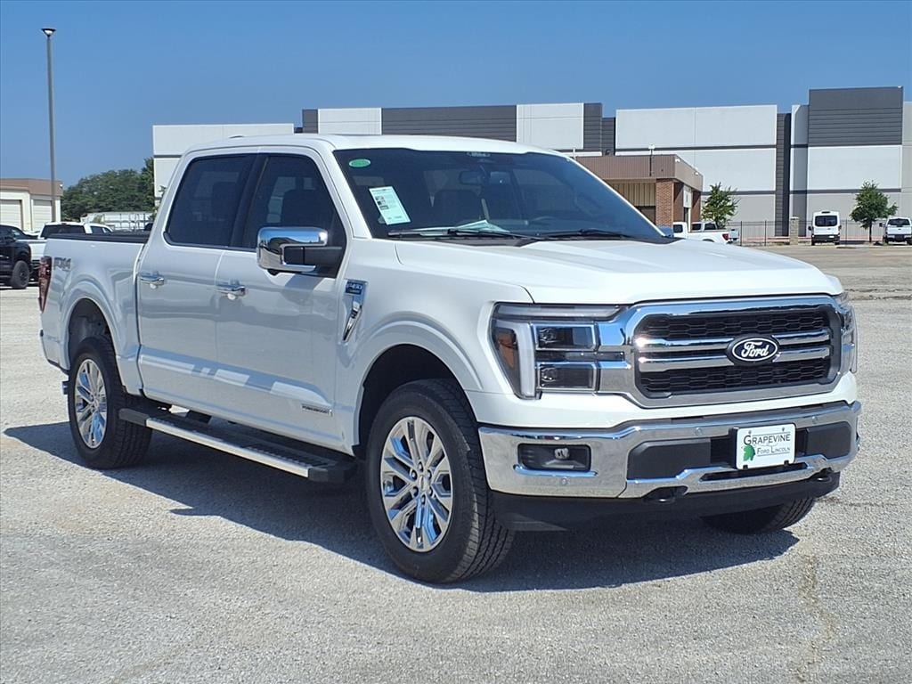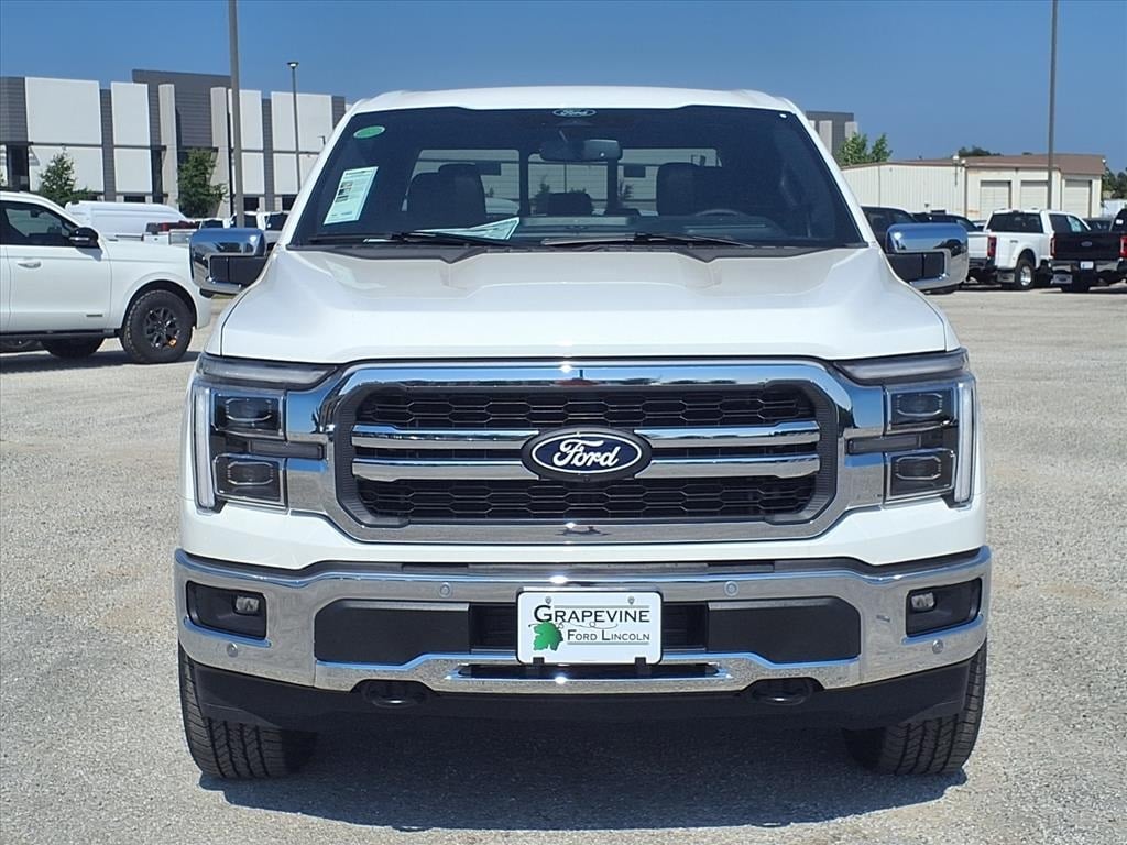 2025 Ford F-150 Lariat White Metallic 4WD 2nd Row Heated Seats, 4 Pickup Box Tie-Down Plates, 4-Wheel Disc Brakes, 4x4 FX4 Off-Road Bodyside Decal, 8 Speakers, ABS brakes, Air Conditioning, Ambient Lighting - Ice Blue Color Only, Automatic temperature control, Bed Utility Package, Console Worksurface, Dual front impact airbags, Dual front side impact airbags, Electronic Locking w/3.31 Axle Ratio, Emergency communication system: SYNC 4 911 Assist, Equipment Group 502A High, Front anti-roll bar, Front dual zone A/C, Front wheel independent suspension, FX4 Off-Road Package, Heads-Up Display, Hill Descent Control, Illuminated Driver & Passenger Visors, LED Box Lighting, Low tire pressure warning, Memory seat, Mobile Office Package, Monotube Rear Shocks, Navigation system: Connected Navigation, Occupant sensing airbag, Off-Road Tuned Front Shock Absorbers, Overhead airbag, Partitioned Lockable Rear Storage, Pedal memory, Power driver seat, Power steering, Power Tailgate, Power windows, Power-Sliding Rear Window, Pro Access Tailgate, Pro Power Onboard - 7.2KW, Radio data system, Radio: B&O Sound System by Bang & Olufsen, Radio: B&O Unleashed Sound System by Bang & Olufsen, Rear window defroster, Remote keyless entry, Rock Crawl Mode, Steering wheel mounted audio controls, SYNC 4 w/Enhanced Voice Recognition, Traction control, Tray Style Floor Liner w/o Carpet Mats, Twin Panel Moonroof, Wheels: 20" Chrome-Like PVD, Wireless Charging. 3.5L PowerBoost Full-Hybrid V6 10-Speed Automatic Grapevine Ford Lincoln proudly serving the following communities. Grapevine, Southlake, Flower Mound, Coppell, Colleyville, Dallas, Ft Worth, Lewisville, Keller, Carrollton, The Colony, Frisco, Plano, Euless. We also serve customers in Argyle, Denton, Trophy Club, Northlake, Little Elm, Sanger, Murphy, Mesquite, DeSoto, Addison, Farmers Branch, University Park, Highland Park, Duncanville, Princeton, Prosper, Allen, Celina, and Farmersville. Some other cities include Fairview, Garland, Lucas, Irving, and Keller. We're right by DFW AIRPORT! Price includes: $500 - Retail Bonus Cash