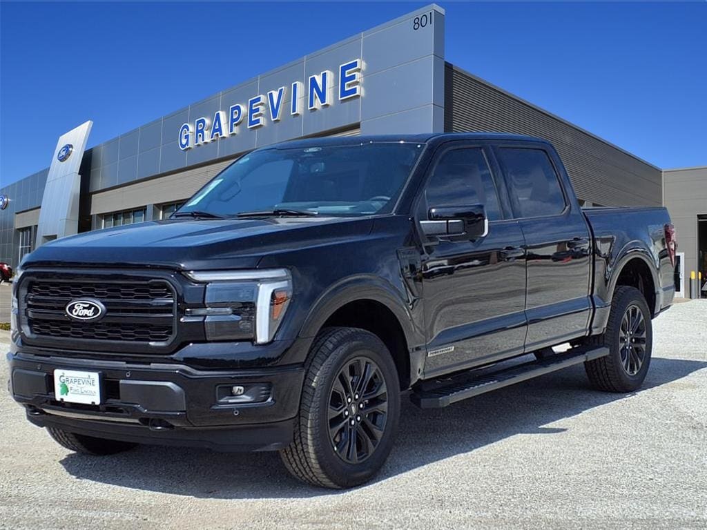 2025 Ford F-150 Lariat Black Metallic 4WD 2nd Row Heated Seats, 4 Pickup Box Tie-Down Plates, 4-Wheel Disc Brakes, 4x4 FX4 Off-Road Bodyside Decal, 8 Speakers, ABS brakes, Air Conditioning, Ambient Lighting - Ice Blue Color Only, Auto High-beam Headlights, Automatic temperature control, Bed Utility Package, BlueCruise Equipped (1-Year Plan), Brake assist, Console Worksurface, Delay-off headlights, Dual front impact airbags, Dual front side impact airbags, Electronic Locking w/3.31 Axle Ratio, Electronic Stability Control, Emergency communication system: SYNC 4 911 Assist, Equipment Group 502A High, Front anti-roll bar, Front dual zone A/C, Front fog lights, Front wheel independent suspension, Fully automatic headlights, FX4 Off-Road Package, Heads-Up Display, Hill Descent Control, Illuminated Driver & Passenger Visors, Integrated Trailer Brake Controller, LED Box Lighting, Low tire pressure warning, Memory seat, Mobile Office Package, Monotube Rear Shocks, Navigation system: Connected Navigation, Occupant sensing airbag, Off-Road Tuned Front Shock Absorbers, Overhead airbag, Panic alarm, Partitioned Lockable Rear Storage, Pedal memory, Power driver seat, Power steering, Power Tailgate, Power windows, Power-Sliding Rear Window, Pro Access Tailgate, Pro Power Onboard - 7.2KW, Radio data system, Radio: B&O Sound System by Bang & Olufsen, Radio: B&O Unleashed Sound System by Bang & Olufsen, Rear window defroster, Remote keyless entry, Rock Crawl Mode, Security system, Speed control, Steering wheel mounted audio controls, SYNC 4 w/Enhanced Voice Recognition, Tow/Haul Package, Traction control, Tray Style Floor Liner w/o Carpet Mats, Wheels: 20" Chrome-Like PVD, Wireless Charging. 3.5L PowerBoost Full-Hybrid V6 10-Speed Automatic Grapevine Ford Lincoln proudly serving the following communities. Grapevine, Southlake, Flower Mound, Coppell, Colleyville, Dallas, Ft Worth, Lewisville, Keller, Carrollton, The Colony, Frisco, Plano, Euless. We also serve customers in Argyle, Denton, Trophy Club, Northlake, Little Elm, Sanger, Murphy, Mesquite, DeSoto, Addison, Farmers Branch, University Park, Highland Park, Duncanville, Princeton, Prosper, Allen, Celina, and Farmersville. Some other cities include Fairview, Garland, Lucas, Irving, and Keller. We're right by DFW AIRPORT! Price includes: $500 - Retail Bonus Cash