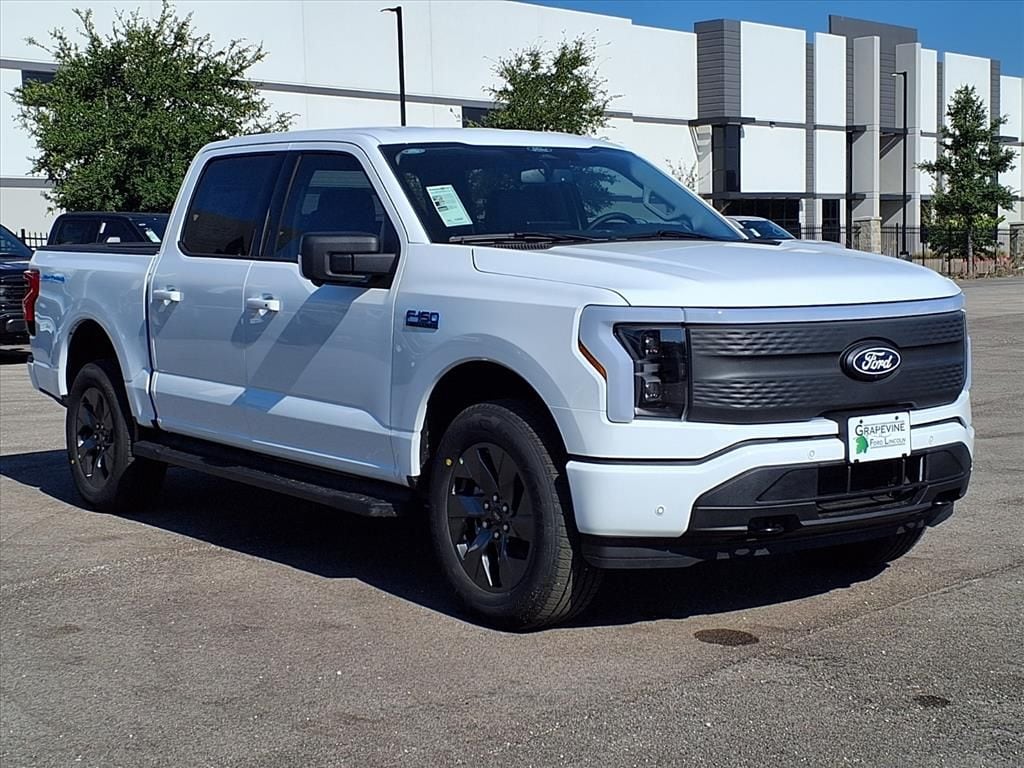 2025 Ford F-150 Lightning Flash Oxford White AWD 4-Wheel Disc Brakes, 8 Speakers, ABS brakes, Air Conditioning, Auto High-beam Headlights, Automatic temperature control, Brake assist, Delay-off headlights, Dual front impact airbags, Dual front side impact airbags, Electronic Stability Control, Emergency communication system: SYNC 4 911 Assist, Equipment Group 312A Standard, Four wheel independent suspension, Front anti-roll bar, Front dual zone A/C, Fully automatic headlights, Knee airbag, Low tire pressure warning, Navigation system: Connected Navigation, Occupant sensing airbag, Overhead airbag, Panic alarm, Power driver seat, Power steering, Power windows, Radio data system, Radio: B&O Sound System by Bang & Olufsen, Rear anti-roll bar, Rear window defroster, Remote keyless entry, Security system, Speed control, Speed-sensing steering, Steering wheel mounted audio controls, SYNC 4A w/Enhanced Voice Recognition, Traction control. Electric Motor Single-Speed Automatic Grapevine Ford Lincoln proudly serving the following communities. Grapevine, Southlake, Flower Mound, Coppell, Colleyville, Dallas, Ft Worth, Lewisville, Keller, Carrollton, The Colony, Frisco, Plano, Euless. We also serve customers in Argyle, Denton, Trophy Club, Northlake, Little Elm, Sanger, Murphy, Mesquite, DeSoto, Addison, Farmers Branch, University Park, Highland Park, Duncanville, Princeton, Prosper, Allen, Celina, and Farmersville. Some other cities include Fairview, Garland, Lucas, Irving, and Keller. We're right by DFW AIRPORT! Price includes: $1000 - Bonus Customer Cash $1000 - Retail Bonus Cash $5000 - Retail Customer Cash