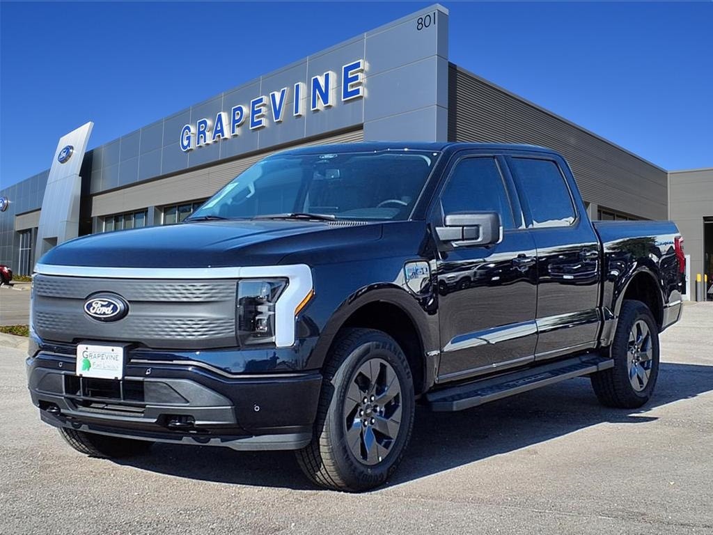 2025 Ford F-150 Lightning Flash Blue Metallic AWD 4-Wheel Disc Brakes, 8 Speakers, ABS brakes, Air Conditioning, Auto High-beam Headlights, Automatic temperature control, BlueCruise Equipped (1-Year Plan), Brake assist, Delay-off headlights, Dual front impact airbags, Dual front side impact airbags, Electronic Stability Control, Emergency communication system: SYNC 4 911 Assist, Equipment Group 312A Standard, Four wheel independent suspension, Front anti-roll bar, Front dual zone A/C, Fully automatic headlights, Knee airbag, Low tire pressure warning, Mobile Power Cord (120/240V), Navigation system: Connected Navigation, Occupant sensing airbag, Overhead airbag, Panic alarm, Power driver seat, Power steering, Power windows, Pro Power Onboard - 9.6 kW Exportable Power, Radio data system, Radio: B&O Sound System by Bang & Olufsen, Rear anti-roll bar, Rear window defroster, Remote keyless entry, Security system, Speed control, Speed-sensing steering, Steering wheel mounted audio controls, SYNC 4A w/Enhanced Voice Recognition, Traction control. Electric Motor Single-Speed Automatic Grapevine Ford Lincoln proudly serving the following communities. Grapevine, Southlake, Flower Mound, Coppell, Colleyville, Dallas, Ft Worth, Lewisville, Keller, Carrollton, The Colony, Frisco, Plano, Euless. We also serve customers in Argyle, Denton, Trophy Club, Northlake, Little Elm, Sanger, Murphy, Mesquite, DeSoto, Addison, Farmers Branch, University Park, Highland Park, Duncanville, Princeton, Prosper, Allen, Celina, and Farmersville. Some other cities include Fairview, Garland, Lucas, Irving, and Keller. We're right by DFW AIRPORT!