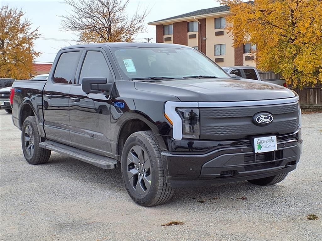 2025 Ford F-150 Lightning Flash Black Metallic AWD 4-Wheel Disc Brakes, 8 Speakers, Air Conditioning, Auto High-beam Headlights, Automatic temperature control, Brake assist, Delay-off headlights, Dual front impact airbags, Dual front side impact airbags, Electronic Stability Control, Emergency communication system: SYNC 4 911 Assist, Equipment Group 312A Standard, Four wheel independent suspension, Front anti-roll bar, Front dual zone A/C, Fully automatic headlights, Internet access capable: FordPass Connect 4G, Knee airbag, Low tire pressure warning, Navigation system: Connected Navigation, Occupant sensing airbag, Overhead airbag, Power driver seat, Power steering, Power windows, Radio: B&O Sound System by Bang & Olufsen, Rear anti-roll bar, Rear window defroster, Remote keyless entry, Speed-sensing steering, Steering wheel mounted audio controls, SYNC 4A w/Enhanced Voice Recognition, Traction control. Electric Motor Single-Speed Automatic Grapevine Ford Lincoln proudly serving the following communities. Grapevine, Southlake, Flower Mound, Coppell, Colleyville, Dallas, Ft Worth, Lewisville, Keller, Carrollton, The Colony, Frisco, Plano, Euless. We also serve customers in Argyle, Denton, Trophy Club, Northlake, Little Elm, Sanger, Murphy, Mesquite, DeSoto, Addison, Farmers Branch, University Park, Highland Park, Duncanville, Princeton, Prosper, Allen, Celina, and Farmersville. Some other cities include Fairview, Garland, Lucas, Irving, and Keller. We're right by DFW AIRPORT! Price includes: $1000 - Final Days Mega Bonus Cash $1000 - Retail Bonus Cash $4000 - Retail Customer Cash