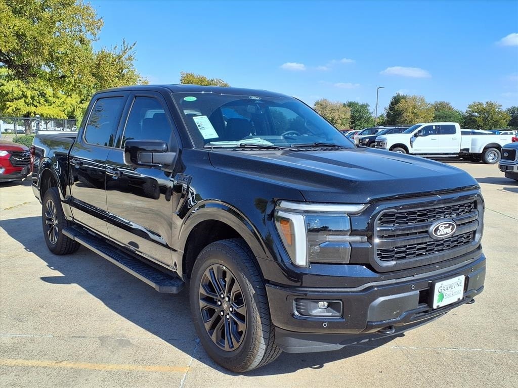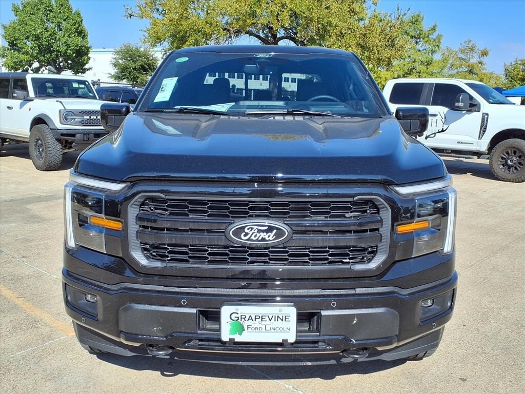 2025 Ford F-150 Lariat Black Metallic 4WD 2nd Row Heated Seats, 4-Wheel Disc Brakes, 4x4 FX4 Off-Road Bodyside Decal, 8 Speakers, ABS brakes, ActiveX Trimmed Bucket Seats (B), Air Conditioning, Ambient Lighting - Ice Blue Color Only, Auto High-beam Headlights, Automatic temperature control, Black Exterior Badging, Black Grille, Black Taillamp Bezels, Body-Color Front & Rear Bumpers, Body-Color Skull Caps & Door Handles, Brake assist, Console Worksurface, Dark Interior Appliques, Delay-off headlights, Dual front impact airbags, Dual front side impact airbags, Electronic Locking w/3.31 Axle Ratio, Electronic Stability Control, Emergency communication system: SYNC 4 911 Assist, Equipment Group 502A High, Front anti-roll bar, Front dual zone A/C, Front fog lights, Front wheel independent suspension, Fully automatic headlights, FX4 Off-Road Package, Gray Box Side Decal, Heads-Up Display, Hill Descent Control, Illuminated Driver & Passenger Visors, Lariat Black Appearance Package, Low tire pressure warning, Matte Black Tailgate F-150 Decal, Memory seat, Mobile Office Package, Monotube Rear Shocks, Navigation system: Connected Navigation, Occupant sensing airbag, Off-Road Tuned Front Shock Absorbers, Overhead airbag, Panic alarm, Partitioned Lockable Rear Storage, Pedal memory, Power driver seat, Power steering, Power windows, Power-Sliding Rear Window, Radio data system, Radio: B&O Sound System by Bang & Olufsen, Radio: B&O Unleashed Sound System by Bang & Olufsen, Rear window defroster, Remote keyless entry, Rock Crawl Mode, Security system, Steering wheel mounted audio controls, SYNC 4 w/Enhanced Voice Recognition, Traction control, Tray Style Floor Liner w/o Carpet Mats, Wheels: 20" Chrome-Like PVD, Wireless Charging. 3.5L V6 EcoBoost 10-Speed Automatic Grapevine Ford Lincoln proudly serving the following communities. Grapevine, Southlake, Flower Mound, Coppell, Colleyville, Dallas, Ft Worth, Lewisville, Keller, Carrollton, The Colony, Frisco, Plano, Euless. We also serve customers in Argyle, Denton, Trophy Club, Northlake, Little Elm, Sanger, Murphy, Mesquite, DeSoto, Addison, Farmers Branch, University Park, Highland Park, Duncanville, Princeton, Prosper, Allen, Celina, and Farmersville. Some other cities include Fairview, Garland, Lucas, Irving, and Keller. We're right by DFW AIRPORT! Price includes: $500 - Retail Bonus Cash