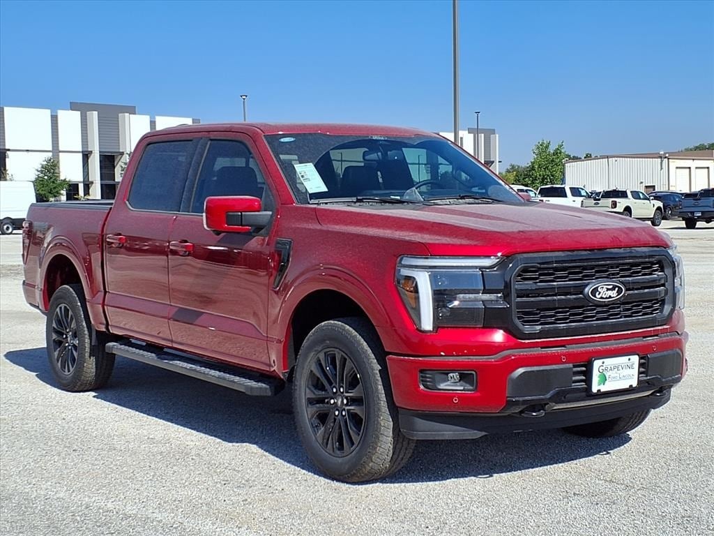 2025 Ford F-150 Lariat Red Metallic 4WD 4-Wheel Disc Brakes, 4x4 FX4 Off-Road Bodyside Decal, 6" Angular Bright Anodized Step Bar, 8 Speakers, ABS brakes, Air Conditioning, Auto High-beam Headlights, Automatic temperature control, BlueCruise Equipped (1-Year Plan), Brake assist, Delay-off headlights, Dual front impact airbags, Dual front side impact airbags, Electronic Locking w/3.31 Axle Ratio, Electronic Stability Control, Emergency communication system: SYNC 4 911 Assist, Equipment Group 501A Mid, Front anti-roll bar, Front dual zone A/C, Front fog lights, Front wheel independent suspension, Fully automatic headlights, FX4 Off-Road Package, Hill Descent Control, Illuminated Driver & Passenger Visors, Low tire pressure warning, Memory seat, Monotube Rear Shocks, Navigation system: Connected Navigation, Occupant sensing airbag, Off-Road Tuned Front Shock Absorbers, Overhead airbag, Panic alarm, Pedal memory, Power driver seat, Power steering, Power windows, Power-Sliding Rear Window, Radio data system, Radio: B&O Sound System by Bang & Olufsen, Rear window defroster, Remote keyless entry, Rock Crawl Mode, Security system, Speed control, Steering wheel mounted audio controls, SYNC 4 w/Enhanced Voice Recognition, Traction control, Tray Style Floor Liner w/o Carpet Mats, Twin Panel Moonroof, Wheels: 20" Chrome-Like PVD. 5.0L V8 10-Speed Automatic Grapevine Ford Lincoln proudly serving the following communities. Grapevine, Southlake, Flower Mound, Coppell, Colleyville, Dallas, Ft Worth, Lewisville, Keller, Carrollton, The Colony, Frisco, Plano, Euless. We also serve customers in Argyle, Denton, Trophy Club, Northlake, Little Elm, Sanger, Murphy, Mesquite, DeSoto, Addison, Farmers Branch, University Park, Highland Park, Duncanville, Princeton, Prosper, Allen, Celina, and Farmersville. Some other cities include Fairview, Garland, Lucas, Irving, and Keller. We're right by DFW AIRPORT! Price includes: $500 - Retail Bonus Cash