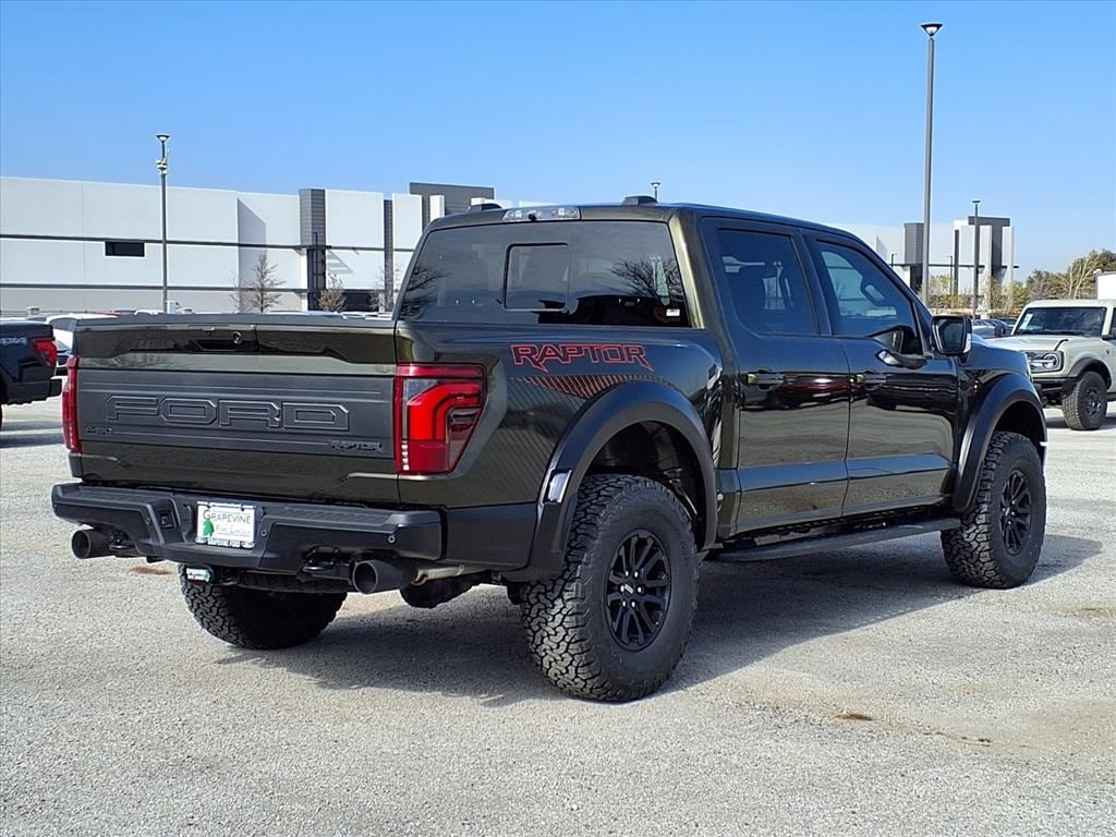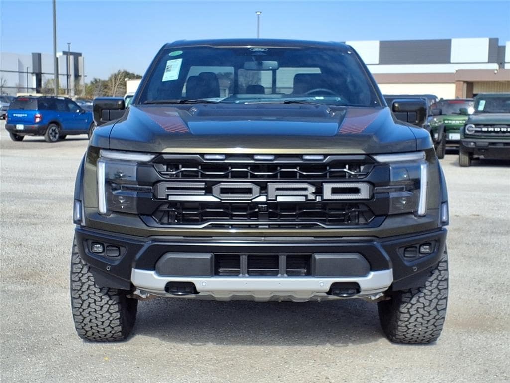 2025 Ford F-150 Raptor Green 4WD 14 Speakers, 4-Wheel Disc Brakes, ABS brakes, Air Conditioning, Automatic temperature control, Brake assist, Dual front impact airbags, Dual front side impact airbags, Electronic Stability Control, Emergency communication system: SYNC 4 911 Assist, Equipment Group 801A Standard, Front anti-roll bar, Front dual zone A/C, Front wheel independent suspension, Heads-Up Display, Internet access capable: FordPass Connect 5G, Lane Departure Warning System, Low tire pressure warning, Memory seat, Navigation system: Connected Navigation, Occupant sensing airbag, Overhead airbag, Pedal memory, Power driver seat, Power steering, Power windows, Radio data system, Radio: B&O Unleashed Sound System by Bang & Olufsen, Rear window defroster, Remote keyless entry, Speed-sensing steering, Steering wheel memory, Steering wheel mounted audio controls, SYNC 4 w/Enhanced Voice Recognition, Traction control, Twin Panel Moonroof. 3.5L V6 EcoBoost 10-Speed Automatic Grapevine Ford Lincoln proudly serving the following communities. Grapevine, Southlake, Flower Mound, Coppell, Colleyville, Dallas, Ft Worth, Lewisville, Keller, Carrollton, The Colony, Frisco, Plano, Euless. We also serve customers in Argyle, Denton, Trophy Club, Northlake, Little Elm, Sanger, Murphy, Mesquite, DeSoto, Addison, Farmers Branch, University Park, Highland Park, Duncanville, Princeton, Prosper, Allen, Celina, and Farmersville. Some other cities include Fairview, Garland, Lucas, Irving, and Keller. We're right by DFW AIRPORT!