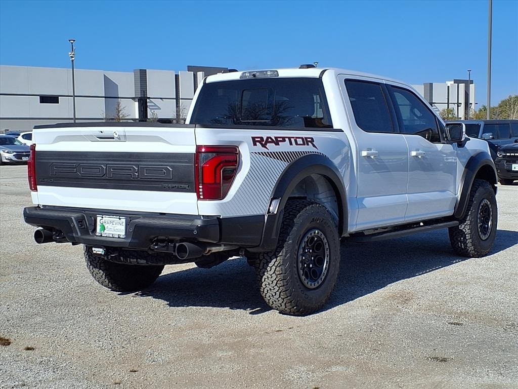 2025 Ford F-150 Raptor Oxford White 4WD 14 Speakers, 4-Wheel Disc Brakes, ABS brakes, Air Conditioning, Auto High-beam Headlights, Automatic temperature control, Brake assist, Carbon Fiber Interior Appliques, Delay-off headlights, Dual front impact airbags, Dual front side impact airbags, Dual Valve Shocks, Electronic Stability Control, Emergency communication system: SYNC 4 911 Assist, Equipment Group 802A Raptor 37, Front anti-roll bar, Front dual zone A/C, Front fog lights, Front wheel independent suspension, Fully automatic headlights, Heads-Up Display, Lane Departure Warning System, Low tire pressure warning, Memory seat, Modular Front Bumper, Navigation system: Connected Navigation, Occupant sensing airbag, Overhead airbag, Pedal memory, Power driver seat, Power steering, Power windows, Radio data system, Radio: B&O Unleashed Sound System by Bang & Olufsen, Rear window defroster, RECARO Alcantara Suede Front Seats, Remote keyless entry, Speed-sensing steering, Steering wheel memory, Steering wheel mounted audio controls, SYNC 4 w/Enhanced Voice Recognition, Traction control, Wheels: Raptor 37 Unique 17" Cast Aluminum. 3.5L V6 EcoBoost 10-Speed Automatic Grapevine Ford Lincoln proudly serving the following communities. Grapevine, Southlake, Flower Mound, Coppell, Colleyville, Dallas, Ft Worth, Lewisville, Keller, Carrollton, The Colony, Frisco, Plano, Euless. We also serve customers in Argyle, Denton, Trophy Club, Northlake, Little Elm, Sanger, Murphy, Mesquite, DeSoto, Addison, Farmers Branch, University Park, Highland Park, Duncanville, Princeton, Prosper, Allen, Celina, and Farmersville. Some other cities include Fairview, Garland, Lucas, Irving, and Keller. We're right by DFW AIRPORT!