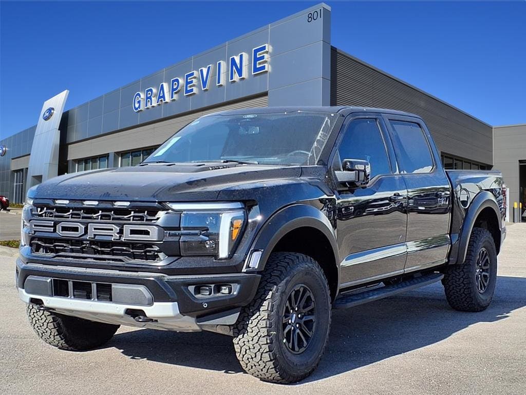 2025 Ford F-150 Raptor Black Metallic 4WD 14 Speakers, 4-Wheel Disc Brakes, ABS brakes, Air Conditioning, Automatic temperature control, Dual front impact airbags, Dual front side impact airbags, Emergency communication system: SYNC 4 911 Assist, Equipment Group 801A Standard, Front anti-roll bar, Front dual zone A/C, Front wheel independent suspension, Heads-Up Display, Low tire pressure warning, Memory seat, Navigation system: Connected Navigation, Occupant sensing airbag, Overhead airbag, Pedal memory, Power driver seat, Power steering, Power windows, Radio data system, Radio: B&O Unleashed Sound System by Bang & Olufsen, Rear window defroster, Remote keyless entry, Speed-sensing steering, Steering wheel memory, Steering wheel mounted audio controls, SYNC 4 w/Enhanced Voice Recognition, Traction control, Twin Panel Moonroof. 3.5L V6 EcoBoost 10-Speed Automatic Grapevine Ford Lincoln proudly serving the following communities. Grapevine, Southlake, Flower Mound, Coppell, Colleyville, Dallas, Ft Worth, Lewisville, Keller, Carrollton, The Colony, Frisco, Plano, Euless. We also serve customers in Argyle, Denton, Trophy Club, Northlake, Little Elm, Sanger, Murphy, Mesquite, DeSoto, Addison, Farmers Branch, University Park, Highland Park, Duncanville, Princeton, Prosper, Allen, Celina, and Farmersville. Some other cities include Fairview, Garland, Lucas, Irving, and Keller. We're right by DFW AIRPORT!