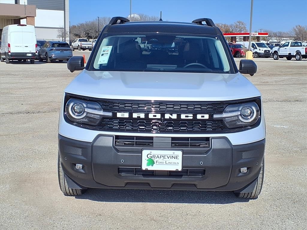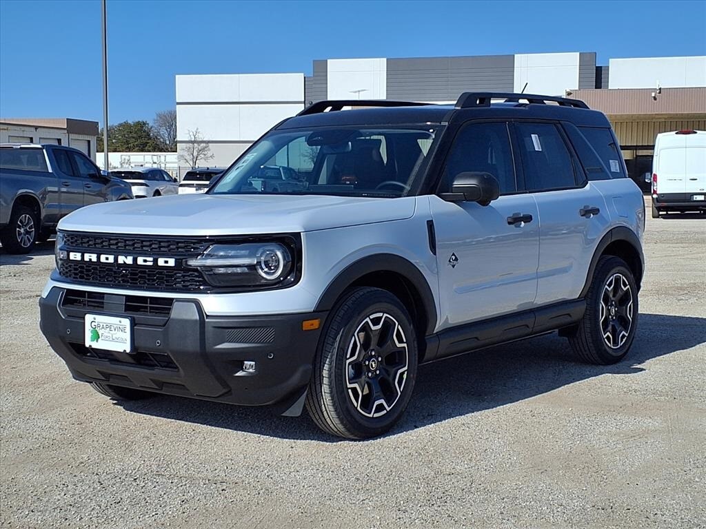 2026 Ford Bronco Sport Outer Banks White 4WD 4-Wheel Disc Brakes, 6 Speakers, ABS brakes, Air Conditioning, AM/FM Stereo, Automatic temperature control, Connected Navigation (1-Year Included), Dual front impact airbags, Dual front side impact airbags, Emergency communication system: SYNC 4 911 Assist, Equipment Group 300A Standard Package, Four wheel independent suspension, Front anti-roll bar, Front Driver/Passenger Seat Back Map Pockets, Front dual zone A/C, Internet access capable: 5G Modem - Ford Connectivity Package, Knee airbag, Low tire pressure warning, Memory seat, Occupant sensing airbag, Outer Banks Tech Package+, Overhead airbag, Power driver seat, Power steering, Power windows, Premium Trimmed Heated Front Sport Contour Bucket Seats, Radio: HD w/B&O Sound System by Bang & Olufsen, Rear anti-roll bar, Rear window defroster, Remote keyless entry, SiriusXM with 360L, Speed-sensing steering, Steering wheel mounted audio controls, SYNC 4 with Enhanced Voice Recognition, Traction control, Wheels: 18" Ebony Black. 1.5L EcoBoost 8-Speed Automatic Grapevine Ford Lincoln proudly serving the following communities. Grapevine, Southlake, Flower Mound, Coppell, Colleyville, Dallas, Ft Worth, Lewisville, Keller, Carrollton, The Colony, Frisco, Plano, Euless. We also serve customers in Argyle, Denton, Trophy Club, Northlake, Little Elm, Sanger, Murphy, Mesquite, DeSoto, Addison, Farmers Branch, University Park, Highland Park, Duncanville, Princeton, Prosper, Allen, Celina, and Farmersville. Some other cities include Fairview, Garland, Lucas, Irving, and Keller. We're right by DFW AIRPORT!