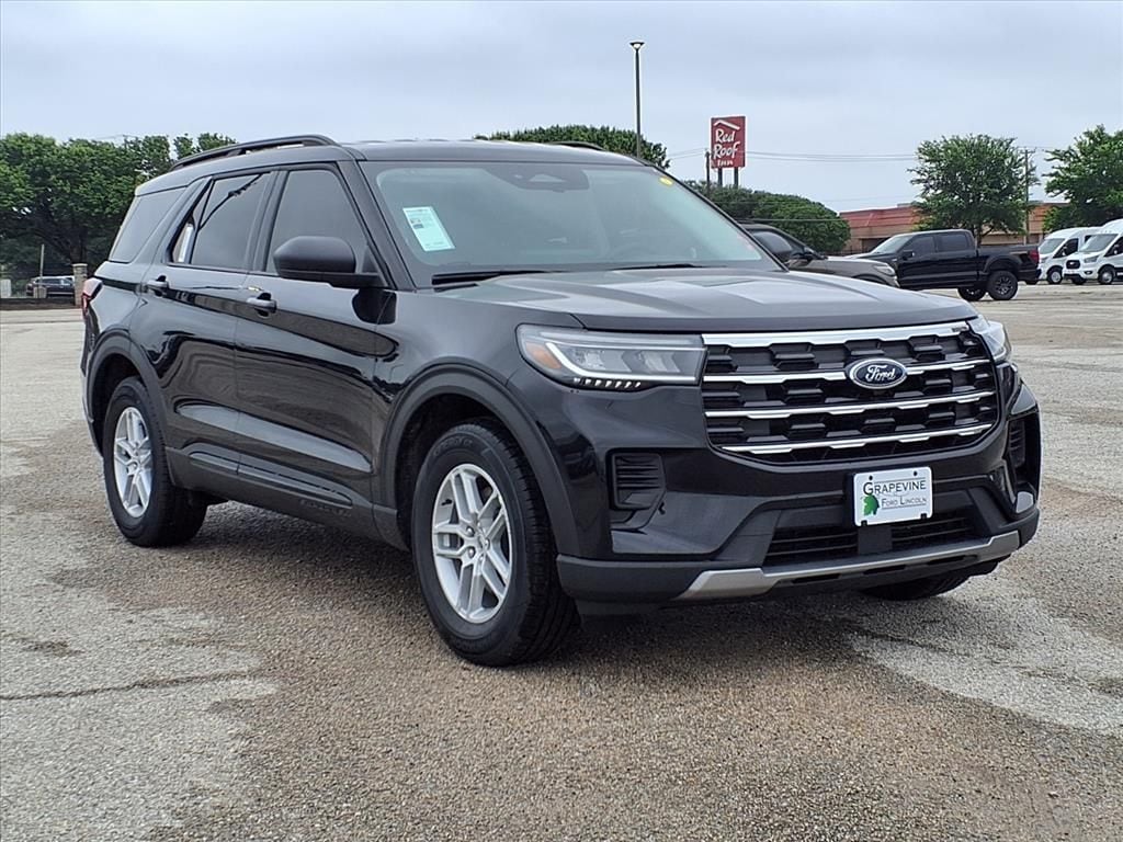 2026 Ford Explorer Active Black Metallic RWD 4-Wheel Disc Brakes, 6 Speakers, ABS brakes, Air Conditioning, AM/FM Stereo, Auto High-beam Headlights, Automatic temperature control, Brake assist, Bumpers: body-color, Delay-off headlights, Dual front impact airbags, Dual front side impact airbags, Electronic Stability Control, Emergency communication system: 911 Assist, Equipment Group 200A Standard Package, Exterior Parking Camera Rear, Four wheel independent suspension, Front anti-roll bar, Front dual zone A/C, Front License Plate Bracket, Fully automatic headlights, Heated door mirrors, Knee airbag, Low tire pressure warning, Navigation System, Occupant sensing airbag, Overhead airbag, Panic alarm, Power door mirrors, Power driver seat, Power steering, Power windows, Rear air conditioning, Rear anti-roll bar, Rear window defroster, Remote keyless entry, Security system, Speed control, Speed-sensing steering, Spoiler, Steering wheel mounted audio controls, Traction control, Unique Cloth Heated Captain's Chairs, Wheels: 18" Sparkle Silver-Painted Aluminum. 2.3L EcoBoost I-4 10-Speed Automatic Grapevine Ford Lincoln proudly serving the following communities. Grapevine, Southlake, Flower Mound, Coppell, Colleyville, Dallas, Ft Worth, Lewisville, Keller, Carrollton, The Colony, Frisco, Plano, Euless. We also serve customers in Argyle, Denton, Trophy Club, Northlake, Little Elm, Sanger, Murphy, Mesquite, DeSoto, Addison, Farmers Branch, University Park, Highland Park, Duncanville, Princeton, Prosper, Allen, Celina, and Farmersville. Some other cities include Fairview, Garland, Lucas, Irving, and Keller. We're right by DFW AIRPORT! Price includes: $3500 - Retail Customer Cash