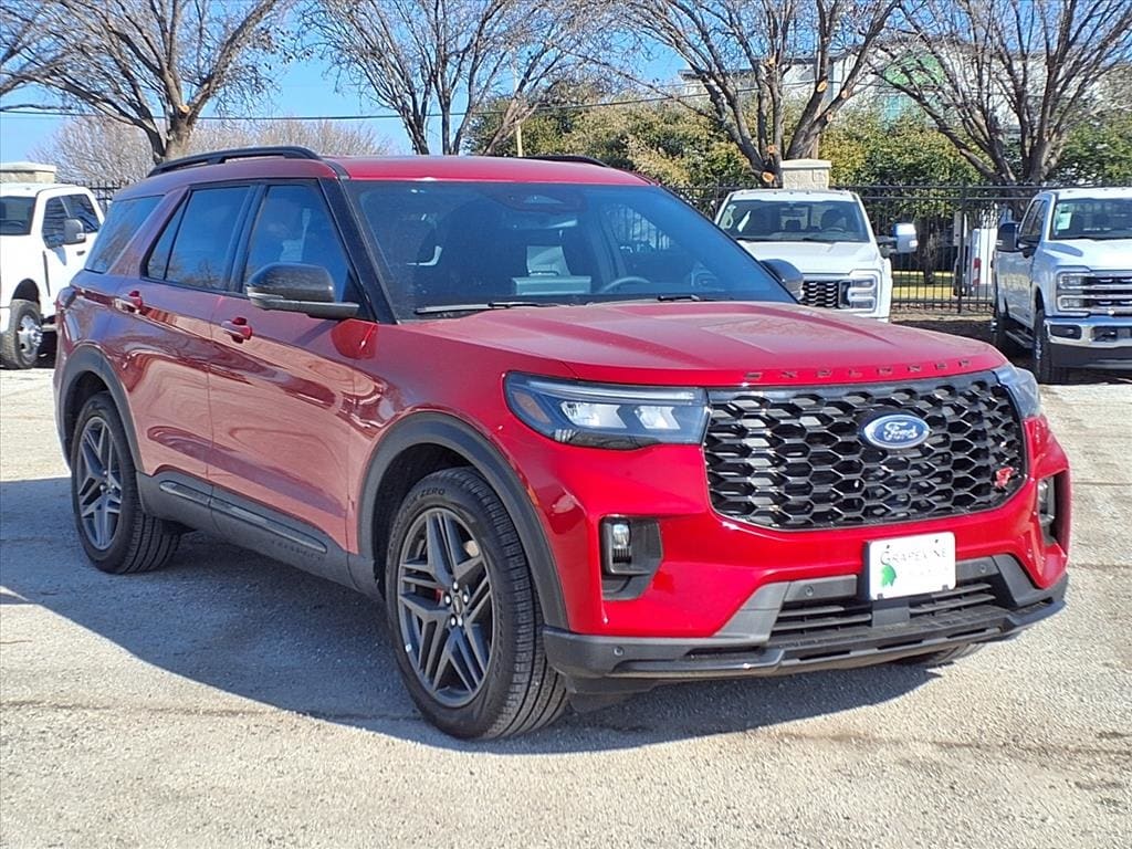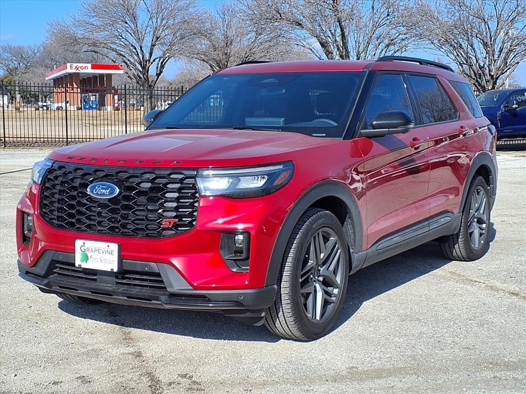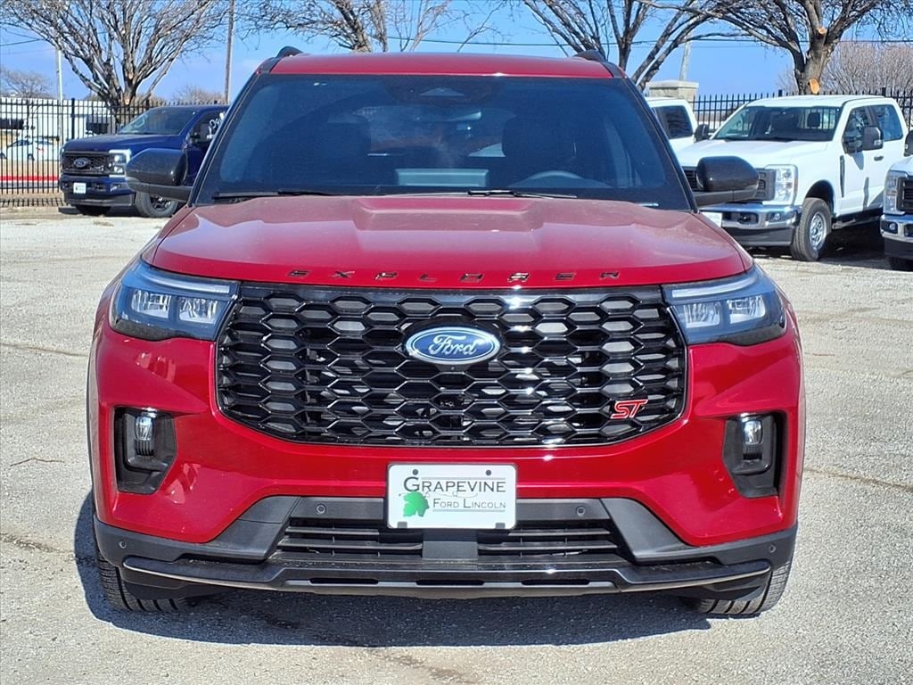 2026 Ford Explorer ST Red Metallic 4WD 10 Speakers, 4-Wheel Disc Brakes, ABS brakes, Air Conditioning, Auto High-beam Headlights, Automatic temperature control, Brake assist, Delay-off headlights, Dual front impact airbags, Dual front side impact airbags, Electronic Stability Control, Emergency communication system: 911 Assist, Equipment Group 400A Standard Package, Four wheel independent suspension, Front anti-roll bar, Front dual zone A/C, Front fog lights, Fully automatic headlights, Heated/Ventilated Miko Suede Captain's Chairs, Knee airbag, Low tire pressure warning, Memory seat, Multicontour Seats with Front Active Motion, Navigation System, Occupant sensing airbag, Overhead airbag, Panoramic Fixed Glass Roof with Power Shade, Power driver seat, Power Liftgate, Power steering, Power windows, Radio: B&O Sound System by Bang & Olufsen, Radio: B&O Sound System by Bang and Olufsen, Rear air conditioning, Rear anti-roll bar, Rear window defroster, Remote Control Front Windows, Remote keyless entry, Speed-sensing steering, Steering wheel mounted audio controls, Sun and Sound Package, Traction control, Wheels: 21" Magnetite-Painted Aluminum. 3.0L EcoBoost V6 10-Speed Automatic Grapevine Ford Lincoln proudly serving the following communities. Grapevine, Southlake, Flower Mound, Coppell, Colleyville, Dallas, Ft Worth, Lewisville, Keller, Carrollton, The Colony, Frisco, Plano, Euless. We also serve customers in Argyle, Denton, Trophy Club, Northlake, Little Elm, Sanger, Murphy, Mesquite, DeSoto, Addison, Farmers Branch, University Park, Highland Park, Duncanville, Princeton, Prosper, Allen, Celina, and Farmersville. Some other cities include Fairview, Garland, Lucas, Irving, and Keller. We're right by DFW AIRPORT! Price includes: $1000 - SUV Spike Retail Bonus Cash $2500 - Retail Customer Cash