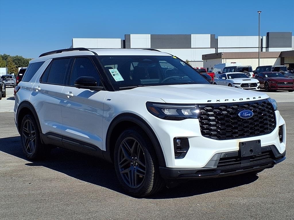 2026 Ford Explorer ST-Line White RWD 10 Speakers, 110V/150W AC Power Outlet, 2nd Row Heated Seats, 4-Wheel Disc Brakes, ABS brakes, Air Conditioning, AM/FM radio: SiriusXM with 360L, Ambient Lighting, Auto-Dimming Interior Rear-View Mirror, Automatic temperature control, Dual front impact airbags, Dual front side impact airbags, Emergency communication system: 911 Assist, Equipment Group 300A Standard Package, Four wheel independent suspension, Front anti-roll bar, Front dual zone A/C, Knee airbag, Low tire pressure warning, Manual-Folding Sideview Mirrors, Memory Driver's Seat, Navigation System, Occupant sensing airbag, Overhead airbag, Performance Brakes, Power driver seat, Power steering, Power windows, Premium Package, Radio: B&O Sound System by Bang & Olufsen, Rain-Sensing Wipers (Front Only), Rear air conditioning, Rear window defroster, Red Painted Perf Front & Rear Brake Calipers, Remote keyless entry, Speed-sensing steering, ST-Line Street Pack, Steering wheel mounted audio controls, Traction control, Wheels: 21" Magnetite-Painted Aluminum. 2.3L EcoBoost I-4 10-Speed Automatic Grapevine Ford Lincoln proudly serving the following communities. Grapevine, Southlake, Flower Mound, Coppell, Colleyville, Dallas, Ft Worth, Lewisville, Keller, Carrollton, The Colony, Frisco, Plano, Euless. We also serve customers in Argyle, Denton, Trophy Club, Northlake, Little Elm, Sanger, Murphy, Mesquite, DeSoto, Addison, Farmers Branch, University Park, Highland Park, Duncanville, Princeton, Prosper, Allen, Celina, and Farmersville. Some other cities include Fairview, Garland, Lucas, Irving, and Keller. We're right by DFW AIRPORT!