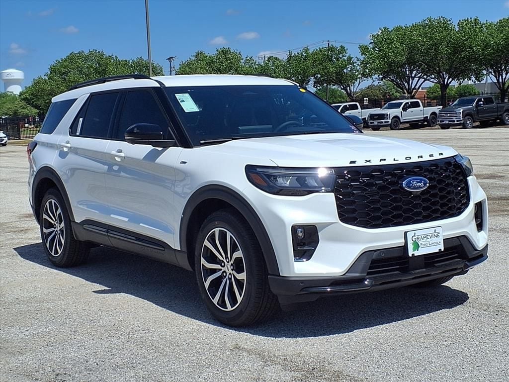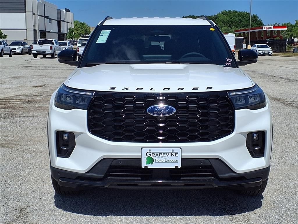 2026 Ford Explorer ST-Line White RWD 10 Speakers, 4-Wheel Disc Brakes, ABS brakes, Air Conditioning, Automatic temperature control, Dual front impact airbags, Dual front side impact airbags, Emergency communication system: 911 Assist, Equipment Group 300A Standard Package, Four wheel independent suspension, Front anti-roll bar, Front dual zone A/C, Heated Unique Cloth Captain's Chairs, Knee airbag, Low tire pressure warning, Navigation System, Occupant sensing airbag, Overhead airbag, Power driver seat, Power steering, Power windows, Radio: B&O Sound System by Bang and Olufsen, Rear air conditioning, Rear anti-roll bar, Rear window defroster, Remote keyless entry, Speed-sensing steering, Steering wheel mounted audio controls, Traction control, Wheels: 20" Ebony-Painted Machined Aluminum. 2.3L EcoBoost I-4 10-Speed Automatic Grapevine Ford Lincoln proudly serving the following communities. Grapevine, Southlake, Flower Mound, Coppell, Colleyville, Dallas, Ft Worth, Lewisville, Keller, Carrollton, The Colony, Frisco, Plano, Euless. We also serve customers in Argyle, Denton, Trophy Club, Northlake, Little Elm, Sanger, Murphy, Mesquite, DeSoto, Addison, Farmers Branch, University Park, Highland Park, Duncanville, Princeton, Prosper, Allen, Celina, and Farmersville. Some other cities include Fairview, Garland, Lucas, Irving, and Keller. We're right by DFW AIRPORT! Price includes: $3500 - Retail Customer Cash