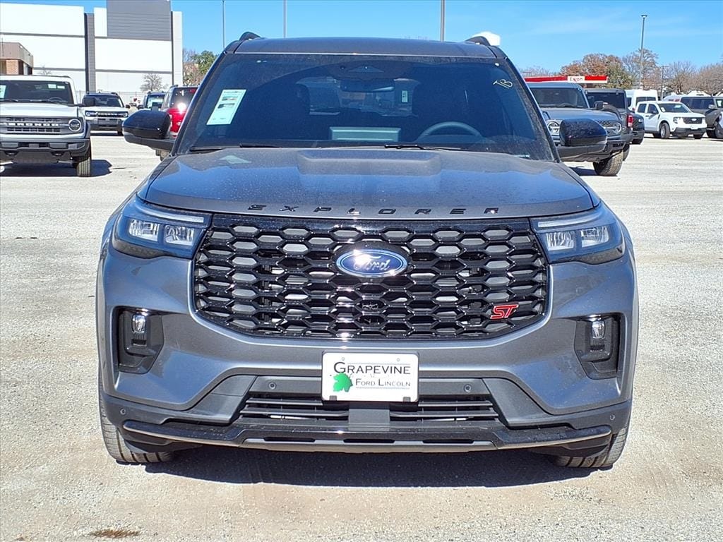 2026 Ford Explorer ST Gray Metallic RWD 10 Speakers, 4-Wheel Disc Brakes, ABS brakes, Air Conditioning, Auto High-beam Headlights, Automatic temperature control, Brake assist, Delay-off headlights, Dual front impact airbags, Dual front side impact airbags, Electronic Stability Control, Emergency communication system: 911 Assist, Equipment Group 400A Standard Package, Exterior Parking Camera Rear, Four wheel independent suspension, Front anti-roll bar, Front dual zone A/C, Front fog lights, Fully automatic headlights, Heated/Ventilated Miko Captain's Chairs, Internet access capable: FordPass Connect 5G, Knee airbag, Low tire pressure warning, Memory seat, Multicontour Seats with Front Active Motion, Navigation System, Occupant sensing airbag, Overhead airbag, Panic alarm, Panoramic Fixed Glass Roof with Power Shade, Power driver seat, Power Liftgate, Power steering, Power windows, Radio: B&O Sound System by Bang & Olufsen, Radio: B&O Sound System by Bang and Olufsen, Rear air conditioning, Rear anti-roll bar, Rear window defroster, Remote Control Front Windows, Remote keyless entry, SecuriCode Keyless Entry Keypad, Security system, Speed-sensing steering, Steering wheel mounted audio controls, Sun and Sound Package, Traction control, Wheels: 21" Magnetite-Painted Aluminum. 3.0L EcoBoost V6 10-Speed Automatic Grapevine Ford Lincoln proudly serving the following communities. Grapevine, Southlake, Flower Mound, Coppell, Colleyville, Dallas, Ft Worth, Lewisville, Keller, Carrollton, The Colony, Frisco, Plano, Euless. We also serve customers in Argyle, Denton, Trophy Club, Northlake, Little Elm, Sanger, Murphy, Mesquite, DeSoto, Addison, Farmers Branch, University Park, Highland Park, Duncanville, Princeton, Prosper, Allen, Celina, and Farmersville. Some other cities include Fairview, Garland, Lucas, Irving, and Keller. We're right by DFW AIRPORT! Price includes: $2500 - Retail Customer Cash