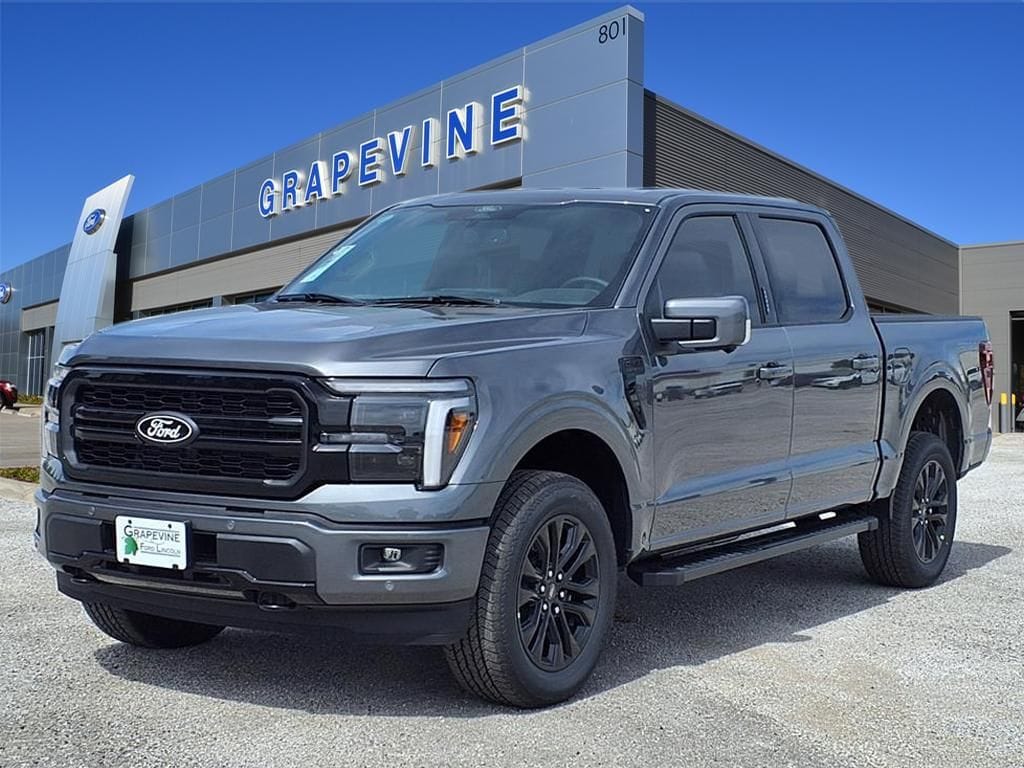 2026 Ford F-150 Lariat Gray Metallic 4WD 4-Wheel Disc Brakes, 4x4 FX4 Off-Road Bodyside Decal, 6" Angular Bright Anodized Step Bar, 8 Speakers, ABS brakes, ActiveX Trimmed Bucket Seats, Air Conditioning, Automatic temperature control, Black Exterior Badging, Black Grille, Black Taillamp Bezels, Body-Color Front and Rear Bumpers, Body-Color Skull Caps and Door Handles, Dark Interior Appliques, Driver's Side SecuriCode Keyless-Entry Keypad, Dual front impact airbags, Dual front side impact airbags, Electronic Locking with 3.31 Axle Ratio, Emergency communication system: SYNC 4 911 Assist, Equipment Group 501A Mid, Ford Connectivity Package (1-Year Included), Front anti-roll bar, Front dual zone A/C, Front wheel independent suspension, FX4 Off-Road Package, Gray Box Side Decal, Hill Descent Control, Illuminated Driver and Passenger Visors, Internet access capable: 5G Modem - Ford Connectivity Package, Lariat Black Appearance Package, Low tire pressure warning, Memory seat, Monotube Rear Shocks, Navigation system: Connected Navigation, Occupant sensing airbag, Off-Road Tuned Front Shock Absorbers, Overhead airbag, Power driver seat, Power steering, Power windows, Power-Adjustable Pedals with Memory, Power-Sliding Rear Window, Radio data system, Radio: B&O Sound System by Bang and Olufsen, Rear window defroster, Remote keyless entry, Steering wheel mounted audio controls, SYNC 4 with Enhanced Voice Recognition, Traction control, Tray Style Floor Liner Without Carpet Mats, Wheels: 20" Chrome-Like PVD. 3.5L V6 EcoBoost 10-Speed Automatic Grapevine Ford Lincoln proudly serving the following communities. Grapevine, Southlake, Flower Mound, Coppell, Colleyville, Dallas, Ft Worth, Lewisville, Keller, Carrollton, The Colony, Frisco, Plano, Euless. We also serve customers in Argyle, Denton, Trophy Club, Northlake, Little Elm, Sanger, Murphy, Mesquite, DeSoto, Addison, Farmers Branch, University Park, Highland Park, Duncanville, Princeton, Prosper, Allen, Celina, and Farmersville. Some other cities include Fairview, Garland, Lucas, Irving, and Keller. We're right by DFW AIRPORT! Price includes: $3500 - Retail Customer Cash