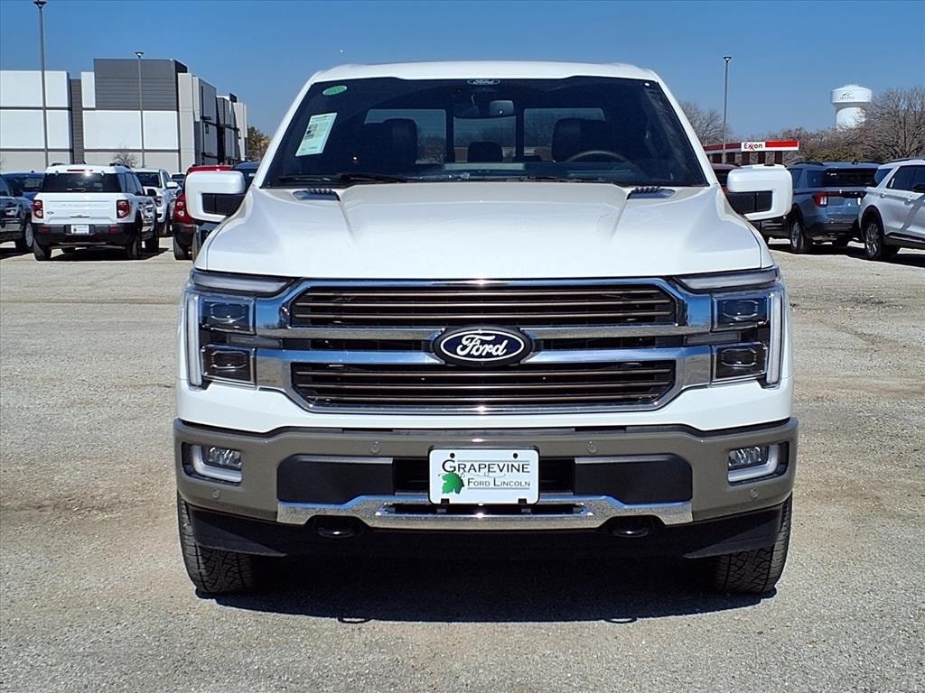 2026 Ford F-150 King Ranch White Metallic 4WD 4x4 FX4 Off-Road Bodyside Decal, 8 Speakers, Air Conditioning, Automatic temperature control, Electronic Locking with 3.55 Axle Ratio, Equipment Group 601A High, Ford Connectivity Package (1-Year Included), Front dual zone A/C, FX4 Off-Road Package, Head-Up Display, Hill Descent Control, Internet access capable: 5G Modem - Ford Connectivity Package, King Ranch Multicontour Leather Bucket Seats, Memory seat, Monotube Rear Shocks, Navigation system: Connected Navigation, Off-Road Tuned Front Shock Absorbers, Pedal memory, Power driver seat, Power steering, Power windows, Power-Deployable Running Boards, Pro Power Onboard - 2KW, Radio data system, Radio: B&O Sound System by Bang and Olufsen, Radio: B&O Unleashed Sound System by Bang & Olufsen, Rear window defroster, Remote keyless entry, Rock Crawl Mode, Steering wheel memory, Steering wheel mounted audio controls, SYNC 4 with Enhanced Voice Recognition, Wheels: 20" Chrome-Like PVD. 3.5L V6 EcoBoost 10-Speed Automatic Grapevine Ford Lincoln proudly serving the following communities. Grapevine, Southlake, Flower Mound, Coppell, Colleyville, Dallas, Ft Worth, Lewisville, Keller, Carrollton, The Colony, Frisco, Plano, Euless. We also serve customers in Argyle, Denton, Trophy Club, Northlake, Little Elm, Sanger, Murphy, Mesquite, DeSoto, Addison, Farmers Branch, University Park, Highland Park, Duncanville, Princeton, Prosper, Allen, Celina, and Farmersville. Some other cities include Fairview, Garland, Lucas, Irving, and Keller. We're right by DFW AIRPORT!