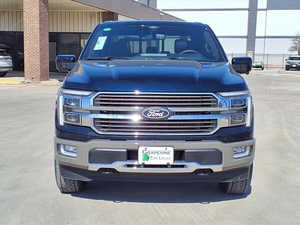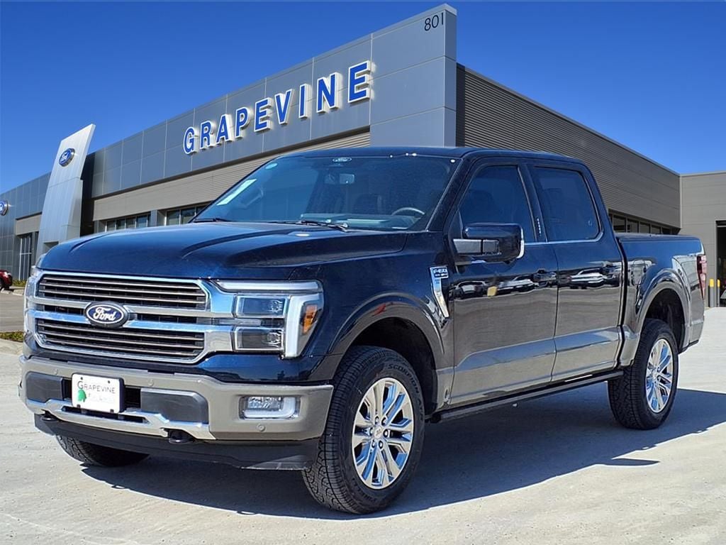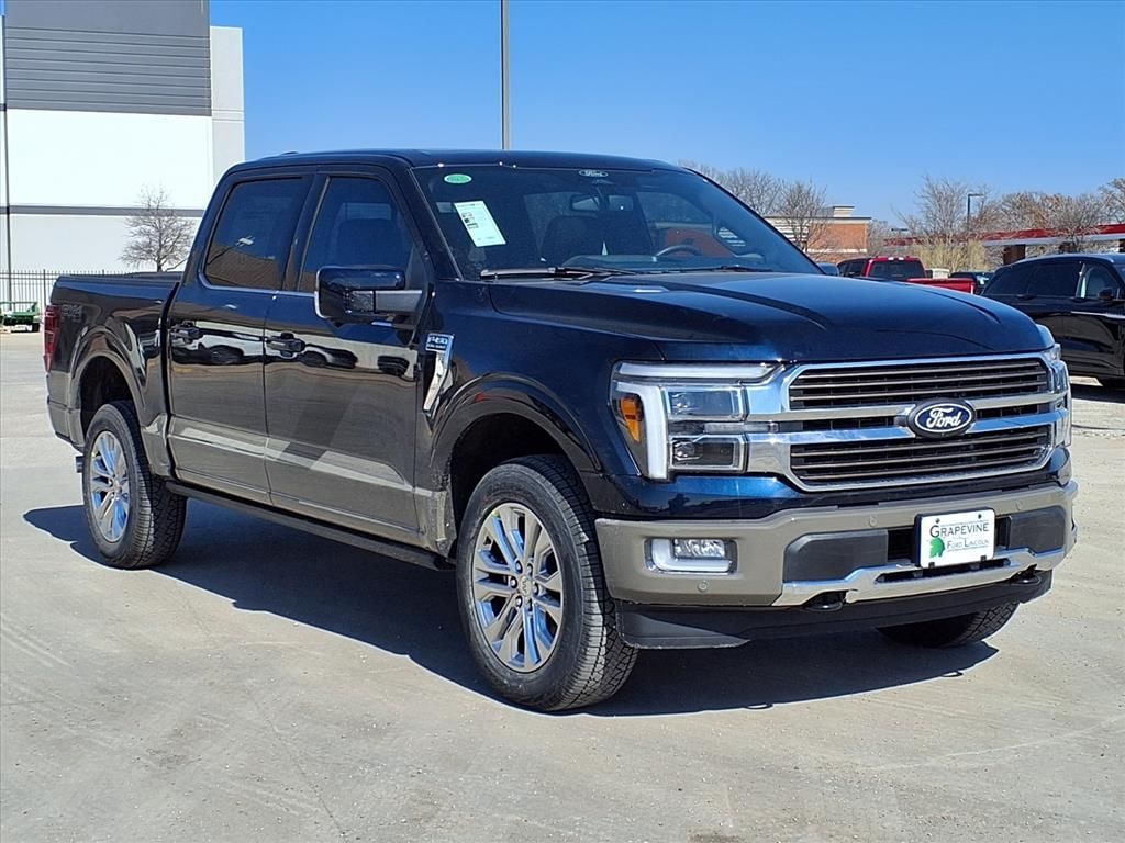 2026 Ford F-150 King Ranch Blue Metallic 4WD 4-Wheel Disc Brakes, 4x4 FX4 Off-Road Bodyside Decal, 8 Speakers, ABS brakes, Air Conditioning, Auto High-beam Headlights, Automatic temperature control, Brake assist, Delay-off headlights, Driver's Side SecuriCode Keyless-Entry Keypad, Dual front impact airbags, Dual front side impact airbags, Electronic Locking with 3.55 Axle Ratio, Electronic Stability Control, Emergency communication system: SYNC 4 911 Assist, Equipment Group 601A High, Ford Connectivity Package (1-Year Included), Front anti-roll bar, Front dual zone A/C, Front fog lights, Front wheel independent suspension, Fully automatic headlights, FX4 Off-Road Package, Head-Up Display, Hill Descent Control, Internet access capable: 5G Modem - Ford Connectivity Package, King Ranch Multicontour Leather Bucket Seats, Low tire pressure warning, Memory seat, Monotube Rear Shocks, Navigation system: Connected Navigation, Occupant sensing airbag, Off-Road Tuned Front Shock Absorbers, Overhead airbag, Pedal memory, Power driver seat, Power steering, Power windows, Power-Deployable Running Boards, Radio data system, Radio: B&O Sound System by Bang and Olufsen, Radio: B&O Unleashed Sound System by Bang & Olufsen, Rear window defroster, Remote keyless entry, Steering wheel memory, Steering wheel mounted audio controls, SYNC 4 with Enhanced Voice Recognition, Traction control, Twin Panel Moonroof, Wheels: 20" Chrome-Like PVD. 3.5L V6 EcoBoost 10-Speed Automatic Grapevine Ford Lincoln proudly serving the following communities. Grapevine, Southlake, Flower Mound, Coppell, Colleyville, Dallas, Ft Worth, Lewisville, Keller, Carrollton, The Colony, Frisco, Plano, Euless. We also serve customers in Argyle, Denton, Trophy Club, Northlake, Little Elm, Sanger, Murphy, Mesquite, DeSoto, Addison, Farmers Branch, University Park, Highland Park, Duncanville, Princeton, Prosper, Allen, Celina, and Farmersville. Some other cities include Fairview, Garland, Lucas, Irving, and Keller. We're right by DFW AIRPORT! Price includes: $500 - Retail Customer Cash