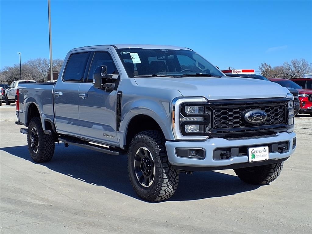 2026 Ford F-250SD Lariat Gray 4WD 3.73 Axle Ratio, 4-Wheel Disc Brakes, ABS brakes, Air Conditioning, Automatic temperature control, Dual front impact airbags, Dual front side impact airbags, Emergency communication system: SYNC 4 911 Assist, Flow-Through Console, Ford Connectivity Package (1-Year Included), Front ActiveX Trimmed 40/Console/40 Seats, Front anti-roll bar, Front dual zone A/C, GVWR: F-250 >10K Package, High Capacity 11.6" Axle Upgrade Package, Internet access capable: 5G Modem - Ford Connectivity Package, Low tire pressure warning, Order Code 608A, Overhead airbag, Power steering, Power windows, Radio: B&O Sound System by Bang and Olufsen, Rapid-Heat Supplemental Cab Heater, Rear window defroster, Remote keyless entry, SiriusXM with 360L, Steering wheel mounted audio controls, SYNC 4 with Enhanced Voice Recognition, Textured Matte Finish Off-Road Running Boards, Traction control, Tremor Off-Road Decal, Tremor Off-Road Package, Wheels: 18" Bright Machined and Carbonized Gray Aluminum, Wheels: 18" Ebony Black Machined and Painted Aluminum. Power Stroke 6.7L V8 DI 32V OHV Turbodiesel 10-Speed Automatic Grapevine Ford Lincoln proudly serving the following communities. Grapevine, Southlake, Flower Mound, Coppell, Colleyville, Dallas, Ft Worth, Lewisville, Keller, Carrollton, The Colony, Frisco, Plano, Euless. We also serve customers in Argyle, Denton, Trophy Club, Northlake, Little Elm, Sanger, Murphy, Mesquite, DeSoto, Addison, Farmers Branch, University Park, Highland Park, Duncanville, Princeton, Prosper, Allen, Celina, and Farmersville. Some other cities include Fairview, Garland, Lucas, Irving, and Keller. We're right by DFW AIRPORT!