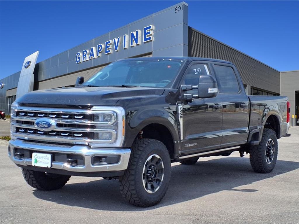 2026 Ford F-250SD Lariat Black 4WD 4-Way Adjustable Headrests, 4-Wheel Disc Brakes, 8 Speakers, ABS brakes, Air Conditioning, Auto High-beam Headlights, Automatic temperature control, Brake assist, Delay-off headlights, Dual AGM 68 AH Battery, Dual front impact airbags, Dual front side impact airbags, Electronic Stability Control, Emergency communication system: SYNC 4 911 Assist, Engine Block Heater, F-250 >10K GVWR Package, Ford Connectivity Package (1-Year Included), Front anti-roll bar, Front dual zone A/C, Front fog lights, Fully automatic headlights, Head-Up Display, High Capacity 11.6" Axle Upgrade Package, Lane Departure Warning System, Lariat Premium Package, Lariat Ultimate Package, Low tire pressure warning, Memory seat, Navigation system: Connected Navigation, Order Code 608A, Overhead airbag, Panic alarm, Pedal memory, Power driver seat, Power steering, Power windows, Power-Deployable Running Boards, Power-Sliding Rear-Window w/Defrost, Privacy Glass, Pro Trailer Backup Assist, Pro Trailer Hitch Assist, Radio: B&O Sound System by Bang & Olufsen, Radio: B&O Unleashed Sound System by Bang & Olufsen, Rear Parking Sensors, Rear window defroster, Remote keyless entry, SecuriCode Keyless Entry Keypad (Driver's Side), Security system, Speed control, Steering wheel mounted audio controls, SYNC 4 w/Enhanced Voice Recognition, Tailgate Step & Handle, Textured Matte Finish Off-Road Running Boards, Traction control, Tremor Off-Road Decal, Tremor Off-Road Package, Twin Panel Power Moonroof, Wheels: 18" Ebony Black Machined & Painted Aluminum. Power Stroke 6.7L V8 DI 32V OHV Turbodiesel 10-Speed Automatic Grapevine Ford Lincoln proudly serving the following communities. Grapevine, Southlake, Flower Mound, Coppell, Colleyville, Dallas, Ft Worth, Lewisville, Keller, Carrollton, The Colony, Frisco, Plano, Euless. We also serve customers in Argyle, Denton, Trophy Club, Northlake, Little Elm, Sanger, Murphy, Mesquite, DeSoto, Addison, Farmers Branch, University Park, Highland Park, Duncanville, Princeton, Prosper, Allen, Celina, and Farmersville. Some other cities include Fairview, Garland, Lucas, Irving, and Keller. We're right by DFW AIRPORT!
