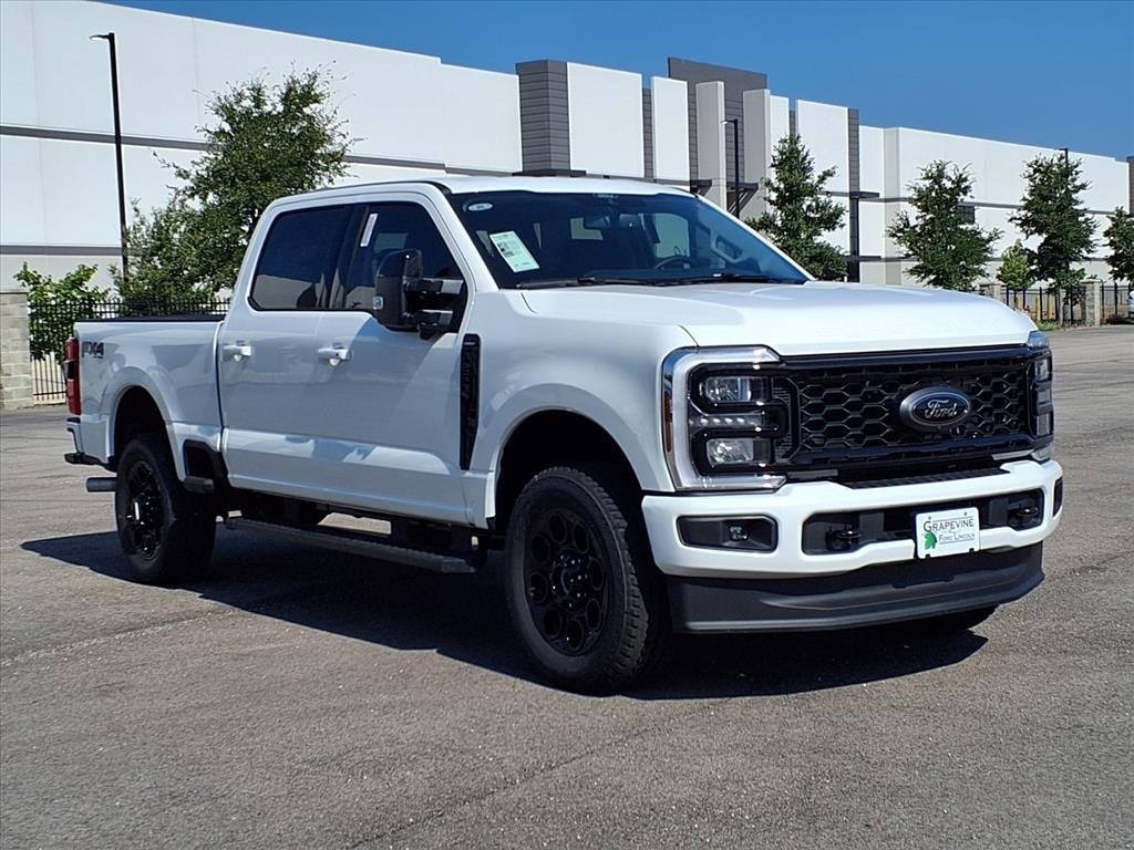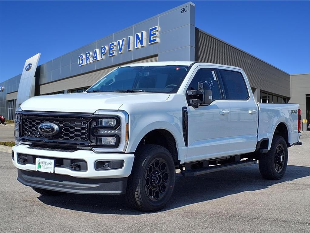 2026 Ford F-250SD Lariat White 4WD 4-Wheel Disc Brakes, 410 Amp Dual Alternators, 8 Speakers, ABS brakes, Air Conditioning, Automatic temperature control, Brake assist, Delay-off headlights, Dual front impact airbags, Dual front side impact airbags, Electronic Stability Control, Emergency communication system: SYNC 4 911 Assist, F-250 >10K GVWR Package, Front anti-roll bar, Front dual zone A/C, Fully automatic headlights, FX4 Off-Road Package, Hill Descent Control, Low tire pressure warning, Off-Road Specifically Tuned Shock Absorbers, Order Code 608A, Overhead airbag, Panic alarm, Power steering, Power windows, Radio: B&O Sound System by Bang & Olufsen, Rapid-Heat Supplemental Cab Heater, Rear window defroster, Remote keyless entry, Security system, Speed control, Steering wheel mounted audio controls, SYNC 4 w/Enhanced Voice Recognition, Traction control, Unique FX4 Off-Road Box Decal. 7.3L 8-Cylinder PFI 10-Speed Automatic Grapevine Ford Lincoln proudly serving the following communities. Grapevine, Southlake, Flower Mound, Coppell, Colleyville, Dallas, Ft Worth, Lewisville, Keller, Carrollton, The Colony, Frisco, Plano, Euless. We also serve customers in Argyle, Denton, Trophy Club, Northlake, Little Elm, Sanger, Murphy, Mesquite, DeSoto, Addison, Farmers Branch, University Park, Highland Park, Duncanville, Princeton, Prosper, Allen, Celina, and Farmersville. Some other cities include Fairview, Garland, Lucas, Irving, and Keller. We're right by DFW AIRPORT!