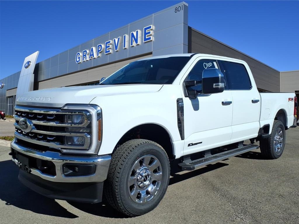2026 Ford F-250SD Lariat Oxford White 4WD 4-Wheel Disc Brakes, 8 Speakers, ABS brakes, Air Conditioning, Automatic temperature control, Dual front impact airbags, Dual front side impact airbags, Emergency communication system: SYNC 4 911 Assist, F-250 >10K GVWR Package, Ford Connectivity Package (1-Year Included), Front anti-roll bar, Front dual zone A/C, FX4 Off-Road Package, Hill Descent Control, Internet access capable: 5G Modem - Ford Connectivity Package, Low tire pressure warning, Off-Road Specifically Tuned Shock Absorbers, Order Code 608A, Overhead airbag, Power steering, Power windows, Radio: B&O Sound System by Bang & Olufsen, Radio: B&O Unleashed Sound System by Bang & Olufsen, Rapid-Heat Supplemental Cab Heater, Rear window defroster, Remote keyless entry, Steering wheel mounted audio controls, SYNC 4 w/Enhanced Voice Recognition, Traction control, Unique FX4 Off-Road Box Decal. Power Stroke 6.7L V8 DI 32V OHV Turbodiesel 10-Speed Automatic Grapevine Ford Lincoln proudly serving the following communities. Grapevine, Southlake, Flower Mound, Coppell, Colleyville, Dallas, Ft Worth, Lewisville, Keller, Carrollton, The Colony, Frisco, Plano, Euless. We also serve customers in Argyle, Denton, Trophy Club, Northlake, Little Elm, Sanger, Murphy, Mesquite, DeSoto, Addison, Farmers Branch, University Park, Highland Park, Duncanville, Princeton, Prosper, Allen, Celina, and Farmersville. Some other cities include Fairview, Garland, Lucas, Irving, and Keller. We're right by DFW AIRPORT!