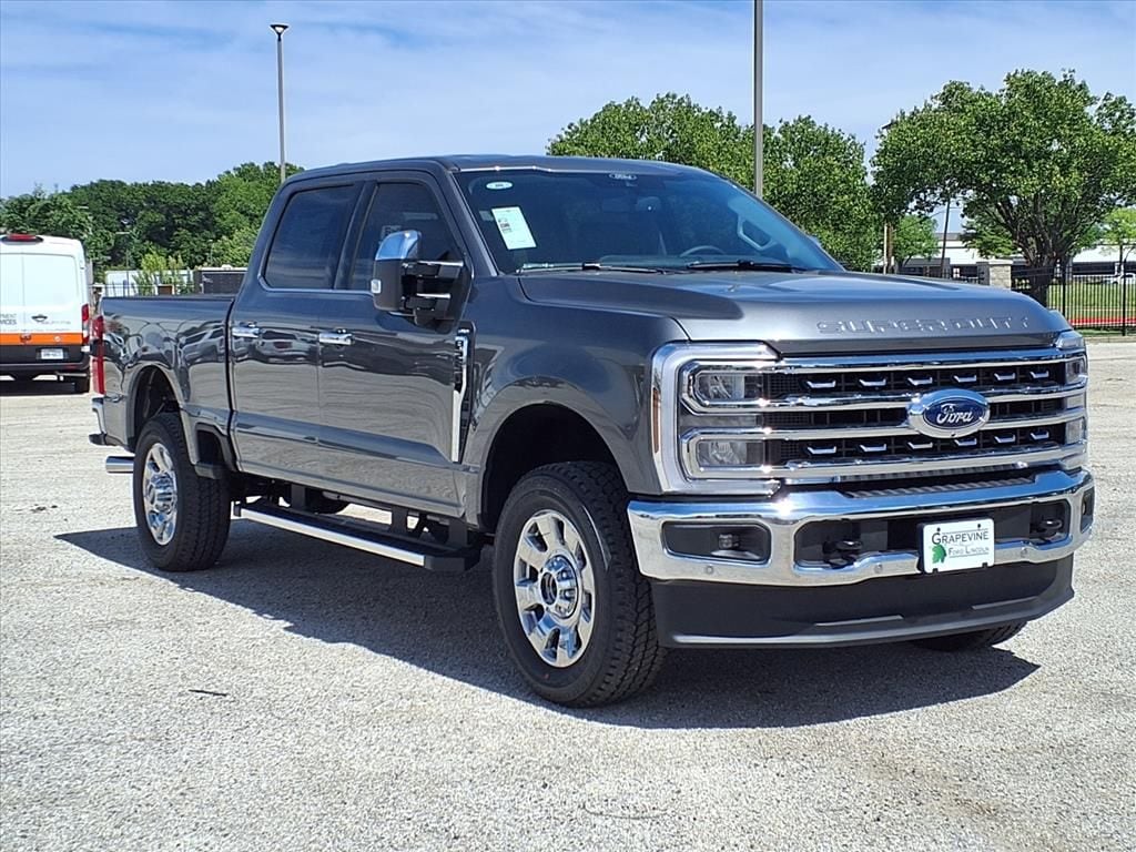 2026 Ford F-250SD Lariat Gray 4WD 3.73 Axle Ratio, 4-Wheel Disc Brakes, 6" Angular Bright Anodized Step Bars, 8 Speakers, ABS brakes, Air Conditioning, Auto High-beam Headlights, Automatic temperature control, Brake assist, Chrome Door Handles, Chrome Exhaust Tip, Chrome Package, Delay-off headlights, Dual front impact airbags, Dual front side impact airbags, Electronic Stability Control, Emergency communication system: SYNC 4 911 Assist, Flow-Through Console, Ford Connectivity Package (1-Year Included), Front ActiveX Trimmed 40/Console/40 Seats, Front anti-roll bar, Front dual zone A/C, Front fog lights, Fully automatic headlights, FX4 Off-Road Package, GVWR: F-250 >10K Package, Hill Descent Control, Internet access capable: 5G Modem - Ford Connectivity Package, Lariat Premium Package, Low tire pressure warning, Memory seat, Navigation system: Connected Navigation, Off-Road Specifically Tuned Shock Absorbers, Order Code 608A, Overhead airbag, Pedal memory, Post-Collision Braking, Power driver seat, Power steering, Power windows, Power-Sliding Rear-Window with Defrost, Privacy Glass, Pro Trailer Backup Assist, Pro Trailer Hitch Assist, Radio: B&O Sound System by Bang and Olufsen, Rear window defroster, Remote keyless entry, SecuriCode Keyless Entry Keypad (driver's Side), SiriusXM with 360L, Steering wheel mounted audio controls, SYNC 4 with Enhanced Voice Recognition, Traction control, Unique Chrome Mirror Caps, Unique FX4 Off-Road Box Decal, Wheels: 18" Bright Machined and Carbonized Gray Aluminum, Wheels: 20" Chrome PVD Aluminum. 7.3L V8 PFI SOHC 16V Federal 405hp 10-Speed Automatic Grapevine Ford Lincoln proudly serving the following communities. Grapevine, Southlake, Flower Mound, Coppell, Colleyville, Dallas, Ft Worth, Lewisville, Keller, Carrollton, The Colony, Frisco, Plano, Euless. We also serve customers in Argyle, Denton, Trophy Club, Northlake, Little Elm, Sanger, Murphy, Mesquite, DeSoto, Addison, Farmers Branch, University Park, Highland Park, Duncanville, Princeton, Prosper, Allen, Celina, and Farmersville. Some other cities include Fairview, Garland, Lucas, Irving, and Keller. We're right by DFW AIRPORT!