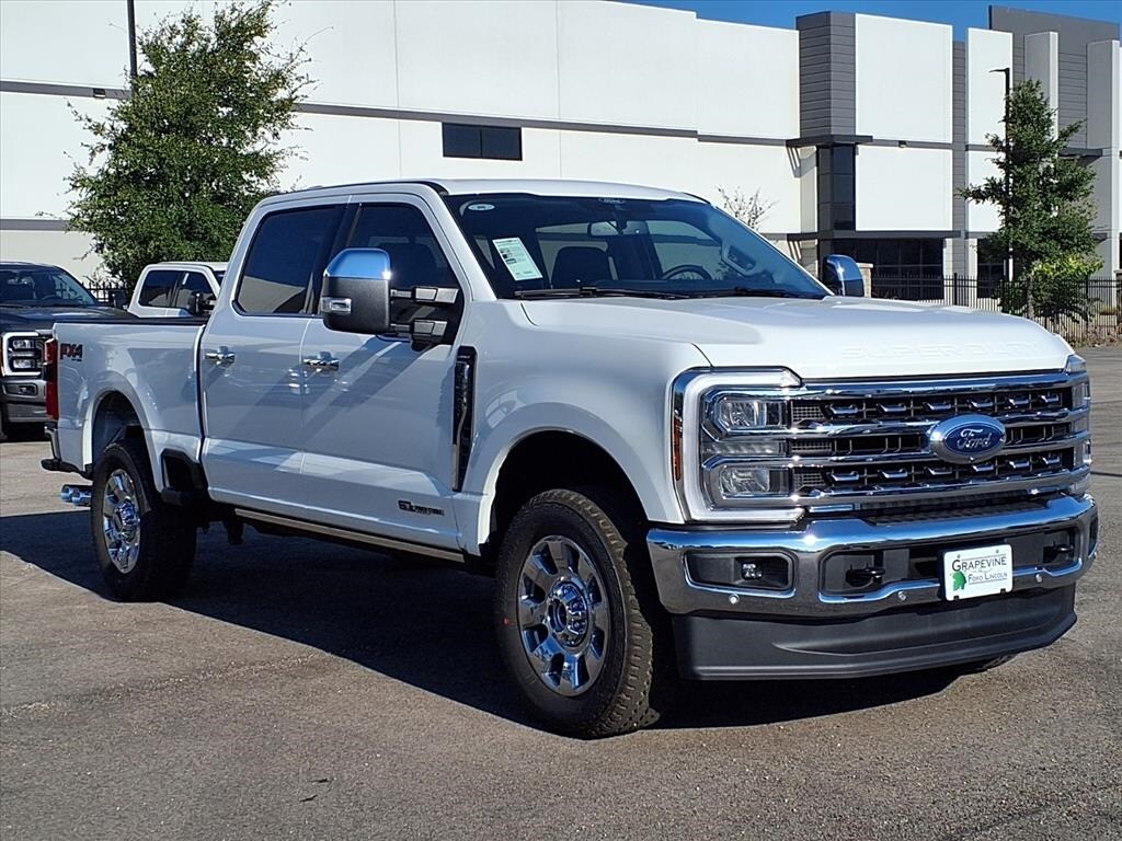 2026 Ford F-250SD Lariat White 4WD 4-Way Adjustable Headrests, 4-Wheel Disc Brakes, 6" Angular Bright Anodized Step Bars, 8 Speakers, ABS brakes, Air Conditioning, Automatic temperature control, Chrome Door Handles, Chrome Exhaust Tip, Chrome Package, Dual front impact airbags, Dual front side impact airbags, Emergency communication system: SYNC 4 911 Assist, F-250 >10K GVWR Package, Ford Connectivity Package (1-Year Included), Front anti-roll bar, Front dual zone A/C, FX4 Off-Road Package, Head-Up Display, Hill Descent Control, Lane Departure Warning System, Lariat Premium Package, Lariat Ultimate Package, Low tire pressure warning, Memory seat, Navigation system: Connected Navigation, Off-Road Specifically Tuned Shock Absorbers, Order Code 608A, Overhead airbag, Pedal memory, Power driver seat, Power steering, Power windows, Power-Deployable Running Boards, Power-Sliding Rear-Window w/Defrost, Privacy Glass, Pro Trailer Backup Assist, Pro Trailer Hitch Assist, Radio: B&O Sound System by Bang & Olufsen, Radio: B&O Unleashed Sound System by Bang & Olufsen, Rear window defroster, Remote keyless entry, SecuriCode Keyless Entry Keypad (Driver's Side), Steering wheel mounted audio controls, SYNC 4 w/Enhanced Voice Recognition, Tailgate Step & Handle, Traction control, Twin Panel Power Moonroof, Unique Chrome Mirror Caps, Unique FX4 Off-Road Box Decal, Wheels: 20" Chrome PVD Aluminum. Power Stroke 6.7L V8 DI 32V OHV Turbodiesel 10-Speed Automatic Grapevine Ford Lincoln proudly serving the following communities. Grapevine, Southlake, Flower Mound, Coppell, Colleyville, Dallas, Ft Worth, Lewisville, Keller, Carrollton, The Colony, Frisco, Plano, Euless. We also serve customers in Argyle, Denton, Trophy Club, Northlake, Little Elm, Sanger, Murphy, Mesquite, DeSoto, Addison, Farmers Branch, University Park, Highland Park, Duncanville, Princeton, Prosper, Allen, Celina, and Farmersville. Some other cities include Fairview, Garland, Lucas, Irving, and Keller. We're right by DFW AIRPORT!