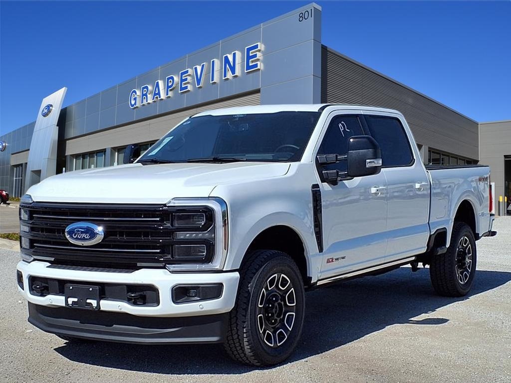 2026 Ford F-250SD Platinum White 4WD 14 Speakers, 4-Wheel Disc Brakes, 410 Amp Dual Alternators, 8 Speakers, ABS brakes, Air Conditioning, Automatic temperature control, Brake assist, Delay-off headlights, Dual front impact airbags, Dual front side impact airbags, Electronic Stability Control, Emergency communication system: SYNC 4 911 Assist, Engine Block Heater, F-250 >10K GVWR Package, Ford Connectivity Package (1-Year Included), Front anti-roll bar, Front dual zone A/C, Fully automatic headlights, FX4 Off-Road Package, High Capacity 11.6" Axle Upgrade Package, Hill Descent Control, Internet access capable: 5G Modem - Ford Connectivity Package, Low tire pressure warning, Off-Road Specifically Tuned Shock Absorbers, Order Code 703A, Overhead airbag, Panic alarm, Power steering, Power windows, Pro Power Onboard - 2kW, Radio: B&O Sound System by Bang & Olufsen, Radio: B&O Unleashed Sound System by Bang & Olufsen, Rapid-Heat Supplemental Cab Heater, Rear window defroster, Remote keyless entry, Security system, Speed control, Steering wheel mounted audio controls, SYNC 4 w/Enhanced Voice Recognition, Traction control, Twin Panel Power Moonroof, Unique FX4 Off-Road Box Decal. 6.7L High Output Power Stroke V8 Diesel 10-Speed Automatic Grapevine Ford Lincoln proudly serving the following communities. Grapevine, Southlake, Flower Mound, Coppell, Colleyville, Dallas, Ft Worth, Lewisville, Keller, Carrollton, The Colony, Frisco, Plano, Euless. We also serve customers in Argyle, Denton, Trophy Club, Northlake, Little Elm, Sanger, Murphy, Mesquite, DeSoto, Addison, Farmers Branch, University Park, Highland Park, Duncanville, Princeton, Prosper, Allen, Celina, and Farmersville. Some other cities include Fairview, Garland, Lucas, Irving, and Keller. We're right by DFW AIRPORT!