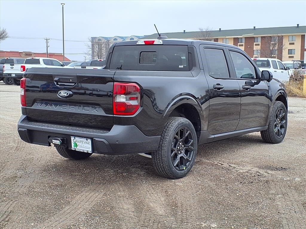 2026 Ford Maverick Lariat Shadow Black AWD 2.91 Axle Ratio, 4-Wheel Disc Brakes, 4K Tow Package, 8 Speakers, ABS brakes, ActiveX Trimmed Heated Front Bucket Seats, Air Conditioning, Auto High-beam Headlights, Automatic temperature control, Black Appearance Package, Black Grille, Black Interior Accents, Brake assist, Delay-off headlights, Dual front impact airbags, Dual front side impact airbags, Electronic Stability Control, Emergency communication system: SYNC 4 911 Assist, Equipment Group 501A, Exterior Parking Camera Rear, Ford Connectivity Package (1-Year Included), Four wheel independent suspension, Front anti-roll bar, Front dual zone A/C, Fully automatic headlights, Internet access capable: 5G Modem - Ford Connectivity Package, Knee airbag, Low tire pressure warning, Navigation system: Connected Navigation, Occupant sensing airbag, Overhead airbag, Panic alarm, Power driver seat, Power steering, Power windows, Radio data system, Radio: B&O Sound System by Bang and Olufsen, Rear anti-roll bar, Remote keyless entry, Security system, SiriusXM with 360L, Speed-sensing steering, Steering wheel mounted audio controls, SYNC 4 with Enhanced Voice Recognition, Traction control, Trailer Brake Controller, Trailer Hitch (class III) 2" Receiver, Upgraded Cooling Fan, Wheels: 19" Black Painted Aluminum, Wheels: 19" Machined Aluminum Painted. 2.5L I-4 Hybrid CVT Grapevine Ford Lincoln proudly serving the following communities. Grapevine, Southlake, Flower Mound, Coppell, Colleyville, Dallas, Ft Worth, Lewisville, Keller, Carrollton, The Colony, Frisco, Plano, Euless. We also serve customers in Argyle, Denton, Trophy Club, Northlake, Little Elm, Sanger, Murphy, Mesquite, DeSoto, Addison, Farmers Branch, University Park, Highland Park, Duncanville, Princeton, Prosper, Allen, Celina, and Farmersville. Some other cities include Fairview, Garland, Lucas, Irving, and Keller. We're right by DFW AIRPORT!