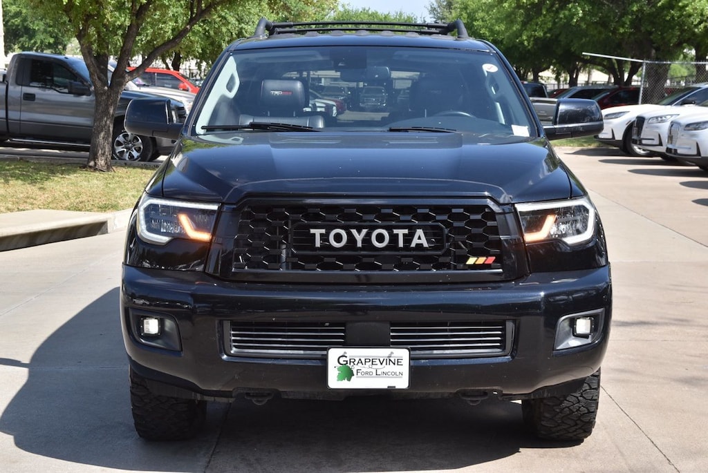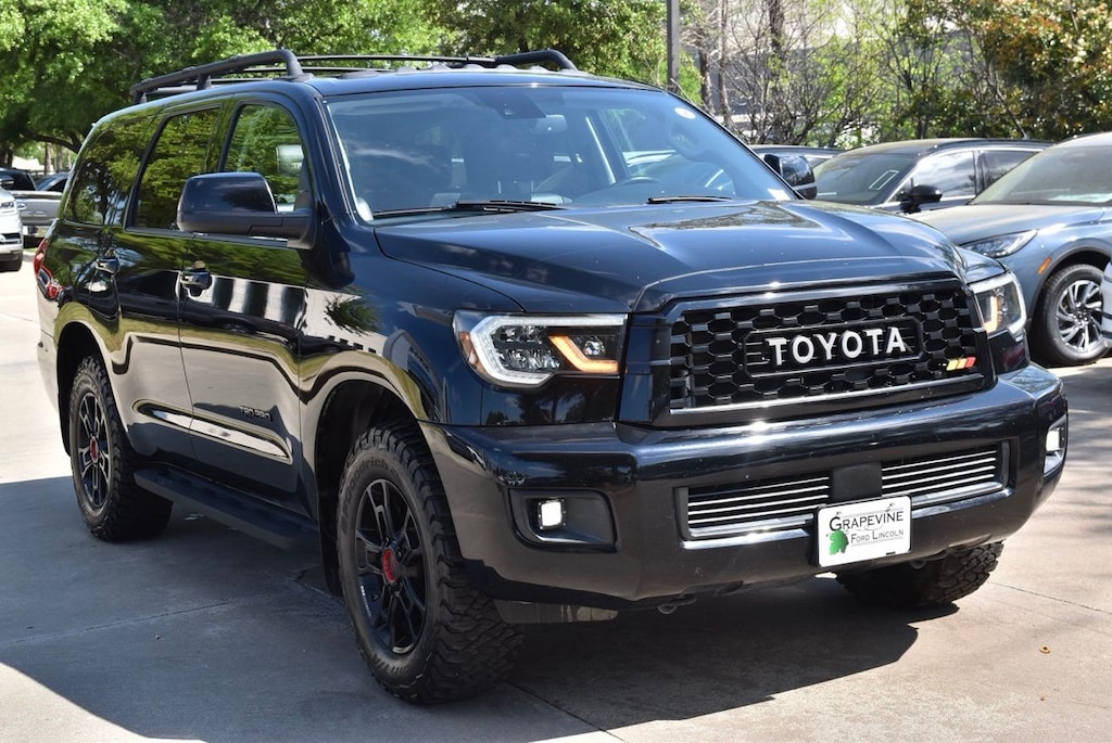 The exterior of this Sequoia TRD Pro exudes confidence and style, with a bold black color scheme and a host of premium features, including: