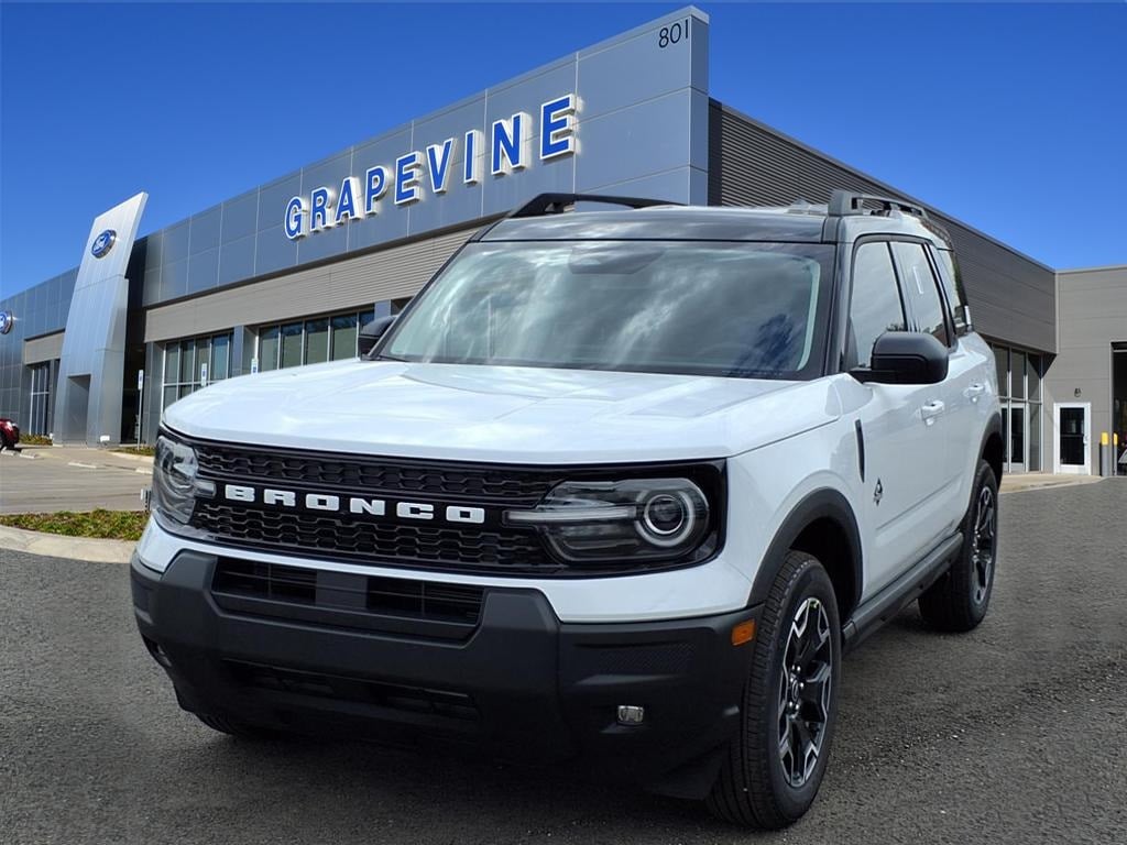 2025 Ford Bronco Sport Outer Banks Oxford White 4WD 4-Wheel Disc Brakes, 6 Speakers, ABS brakes, Air Conditioning, AM/FM Stereo, Automatic temperature control, Dual front impact airbags, Dual front side impact airbags, Emergency communication system: SYNC 4 911 Assist, Equipment Group 300A, Four wheel independent suspension, Front anti-roll bar, Front dual zone A/C, Knee airbag, Low tire pressure warning, Memory seat, Occupant sensing airbag, Overhead airbag, Power driver seat, Power steering, Power windows, Radio data system, Rear anti-roll bar, Rear window defroster, Remote keyless entry, SiriusXM, Speed-sensing steering, Steering wheel mounted audio controls, SYNC 4 w/Enhanced Voice Recognition, Traction control. 1.5L EcoBoost 8-Speed Automatic Grapevine Ford Lincoln proudly serving the following communities. Grapevine, Southlake, Flower Mound, Coppell, Colleyville, Dallas, Ft Worth, Lewisville, Keller, Carrollton, The Colony, Frisco, Plano, Euless. We also serve customers in Argyle, Denton, Trophy Club, Northlake, Little Elm, Sanger, Murphy, Mesquite, DeSoto, Addison, Farmers Branch, University Park, Highland Park, Duncanville, Princeton, Prosper, Allen, Celina, and Farmersville. Some other cities include Fairview, Garland, Lucas, Irving, and Keller. We're right by DFW AIRPORT! Price includes: $1500 - Retail Bonus Cash