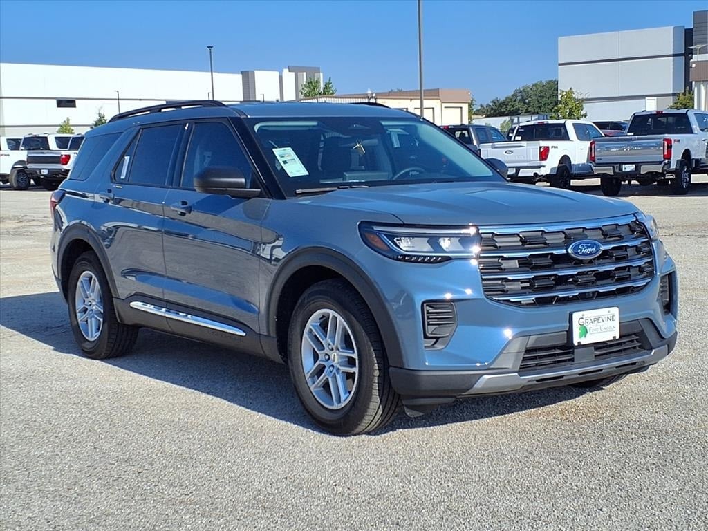 2025 Ford Explorer Active Vapor Blue RWD 4-Wheel Disc Brakes, 6 Speakers, ABS brakes, Air Conditioning, AM/FM Stereo, Automatic temperature control, Dual front impact airbags, Dual front side impact airbags, Emergency communication system: 911 Assist, Equipment Group 200A Standard Package, Four wheel independent suspension, Front anti-roll bar, Front dual zone A/C, Knee airbag, Low tire pressure warning, Navigation System, Occupant sensing airbag, Overhead airbag, Power driver seat, Power steering, Power windows, Rear air conditioning, Rear anti-roll bar, Rear window defroster, Remote keyless entry, Speed-sensing steering, Steering wheel mounted audio controls, Traction control. 2.3L EcoBoost I-4 10-Speed Automatic Grapevine Ford Lincoln proudly serving the following communities. Grapevine, Southlake, Flower Mound, Coppell, Colleyville, Dallas, Ft Worth, Lewisville, Keller, Carrollton, The Colony, Frisco, Plano, Euless. We also serve customers in Argyle, Denton, Trophy Club, Northlake, Little Elm, Sanger, Murphy, Mesquite, DeSoto, Addison, Farmers Branch, University Park, Highland Park, Duncanville, Princeton, Prosper, Allen, Celina, and Farmersville. Some other cities include Fairview, Garland, Lucas, Irving, and Keller. We're right by DFW AIRPORT! Price includes: $1500 - Bonus Customer Cash