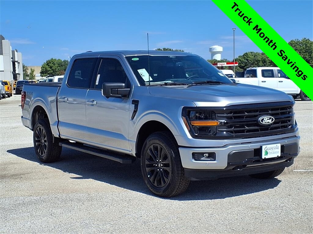 2025 Ford F-150 XLT Silver Metallic 4WD 360 Degree Camera, 4-Wheel Disc Brakes, 400W Cab & Bed Outlets, 4x4 FX4 Off-Road Bodyside Decal, 6 Speakers, 6" Angular Bright Anodized Step Bar, ABS brakes, Adaptive Cruise Control w/Stop & Go, Air Conditioning, Auto-Dimming Rear-View Mirror, Black Painted Grille w/Chrome Center Bar, Brake assist, Chrome Door & Tailgate Handles, Chrome Single-Tip Exhaust, Cloth 40/Console/40 Front Seats, Connected Navigation, Driver State Detection, Dual front impact airbags, Dual front side impact airbags, Dual-Zone Electronic Automatic Temperature Control, Electronic Stability Control, Emergency communication system: SYNC 4 911 Assist, Equipment Group 302A Mid, Evasive Steering Assist, Ford Co-Pilot360 Assist 2.0, Front anti-roll bar, Front Parking Sensors, Front wheel independent suspension, FX4 Off-Road Package, Heated Front Seats, Hill Descent Control, Intelligent Access w/Push Button Start, Low tire pressure warning, Monotube Rear Shocks, Occupant sensing airbag, Off-Road Tuned Front Shock Absorbers, Overhead airbag, Power Glass Heated Sideview Mirrors, Power steering, Power windows, Power-Sliding Rear Window, Radio data system, Radio: AM/FM Stereo w/SiriusXM 360L, Rear window defroster, Remote keyless entry, Remote Start System w/Remote Tailgate Release, Rock Crawl Mode, Steering wheel mounted audio controls, SYNC 4 w/Enhanced Voice Recognition, Towing Technology, Traction control, Tray Style Floor Liner w/o Carpet Mats, Wrapped Steering Wheel. 3.5L V6 EcoBoost 10-Speed Automatic Grapevine Ford Lincoln proudly serving the following communities. Grapevine, Southlake, Flower Mound, Coppell, Colleyville, Dallas, Ft Worth, Lewisville, Keller, Carrollton, The Colony, Frisco, Plano, Euless. We also serve customers in Argyle, Denton, Trophy Club, Northlake, Little Elm, Sanger, Murphy, Mesquite, DeSoto, Addison, Farmers Branch, University Park, Highland Park, Duncanville, Princeton, Prosper, Allen, Celina, and Farmersville. Some other cities include Fairview, Garland, Lucas, Irving, and Keller. We're right by DFW AIRPORT! Price includes: $1000 - Truck Month Retail Bonus Cash $2000 - Retail Customer Cash $2500 - Retail Bonus Cash