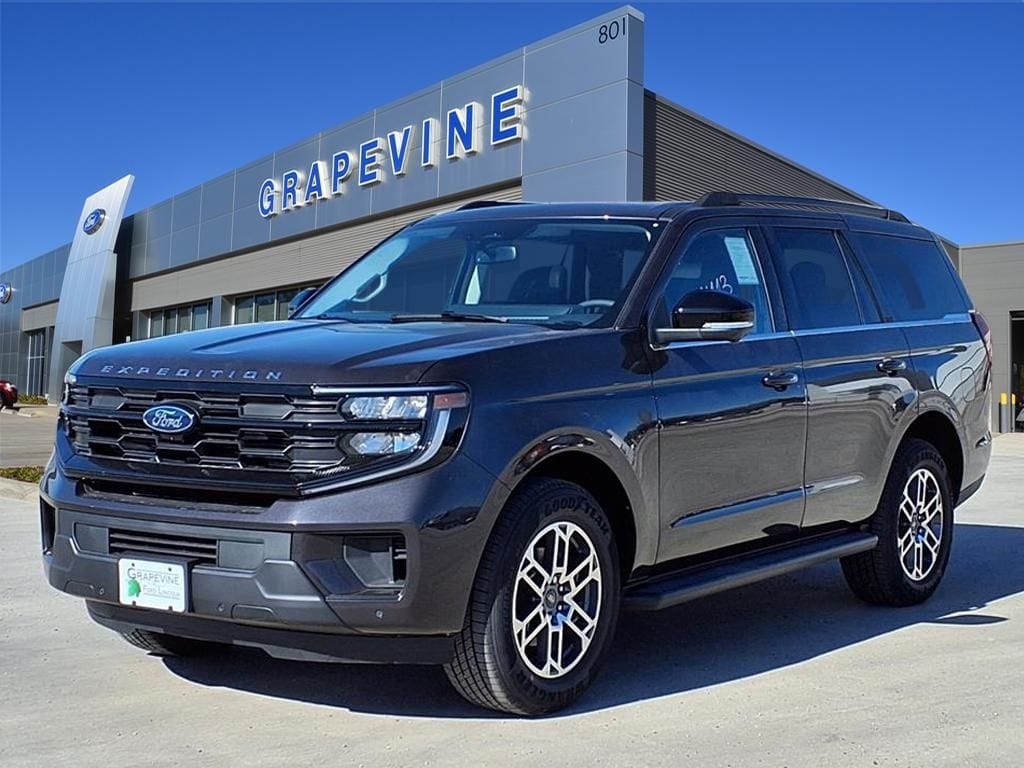 2026 Ford Expedition Active Gray Metallic RWD 2nd Row Power-Folding Captain's Chairs, 3.31 Axle Ratio, 360-Degree Zone Lighting, 3rd Row Vinyl Seats, 4-Door Intelligent Access (Lock/Unlock), 4-Way Manual Head Restraints, 4-Wheel Disc Brakes, 6 Speakers, ABS brakes, Active Air Dam, ActiveX-Trimmed Front Heated Captain's Chairs, Air Conditioning, Automatic temperature control, Dual front impact airbags, Dual front side impact airbags, Dual Power-Folding Sideview Mirrors with Autofold, Emergency communication system: 911 Assist, Equipment Group 202A Touring Package, Flex Powered Console, Ford Connectivity Package (1-Year Included), Ford Digital Experience, Ford Split Gate, Four wheel independent suspension, Front anti-roll bar, Front dual zone A/C, Front Side Laminated Glass, Heated Steering Wheel, Low tire pressure warning, Memory Driver Seat, Navigation System, Occupant sensing airbag, Overhead airbag, Power driver seat, Power steering, Power Tilt/Telescopic Steering Wheel with Memory, Power windows, Pro Power Onboard - 400W, Radio data system, Radio: AM/FM Stereo with MP3 Capable, Rain Sensitive Windshield Wipers, Rear air conditioning, Rear anti-roll bar, Rear window defroster, Remote keyless entry, SiriusXM with 360L, Speed-sensing steering, Steering wheel mounted audio controls, Traction control, USB Ports, Wheels: 18" x 8.5" Dark Alloy Painted Aluminum. EcoBoost 3.5L V6 GTDi DOHC 24V Twin Turbocharged 10-Speed Automatic Grapevine Ford Lincoln proudly serving the following communities. Grapevine, Southlake, Flower Mound, Coppell, Colleyville, Dallas, Ft Worth, Lewisville, Keller, Carrollton, The Colony, Frisco, Plano, Euless. We also serve customers in Argyle, Denton, Trophy Club, Northlake, Little Elm, Sanger, Murphy, Mesquite, DeSoto, Addison, Farmers Branch, University Park, Highland Park, Duncanville, Princeton, Prosper, Allen, Celina, and Farmersville. Some other cities include Fairview, Garland, Lucas, Irving, and Keller. We're right by DFW AIRPORT!